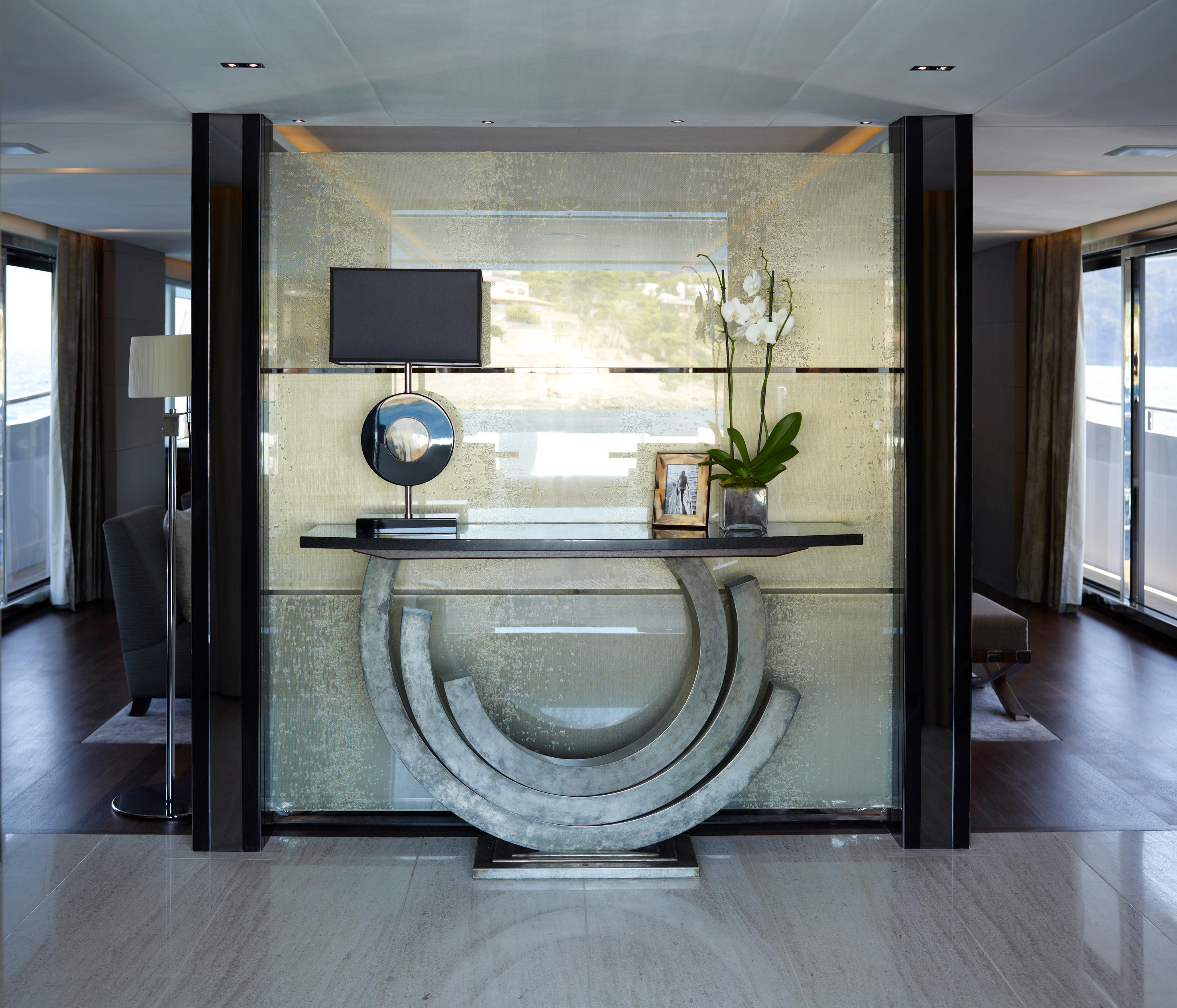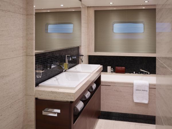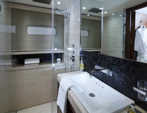 Attention to detail, and to guest comfort, are evident throughout, in everything right down to the under floor heating in all guest bathrooms. A grand central staircase links each deck from the sundeck to the lower accommodation and the crew can circulate around the boat using their own discrete stairway between decks.