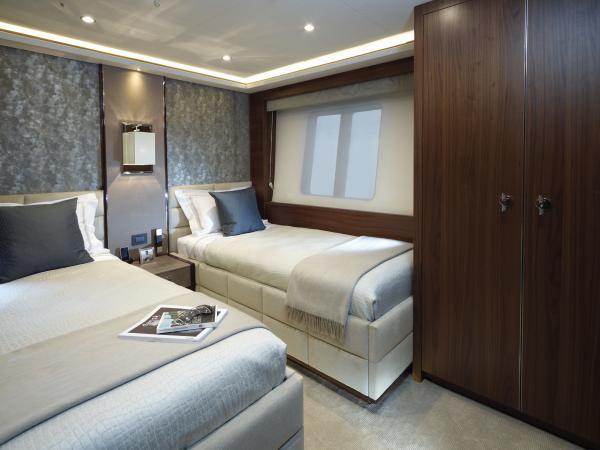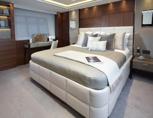 The magnificent owners suite takes pride of place forward of the main deck and is exceptionally spacious with a palatial bathroom which can be specified as individual ‘his and hers’ if required. It also features expansive walk-in wardrobes and an ante-room which owners can specify to suit their requirements. Space below deck is exceptional and can accommodate up to five additional staterooms with ease.