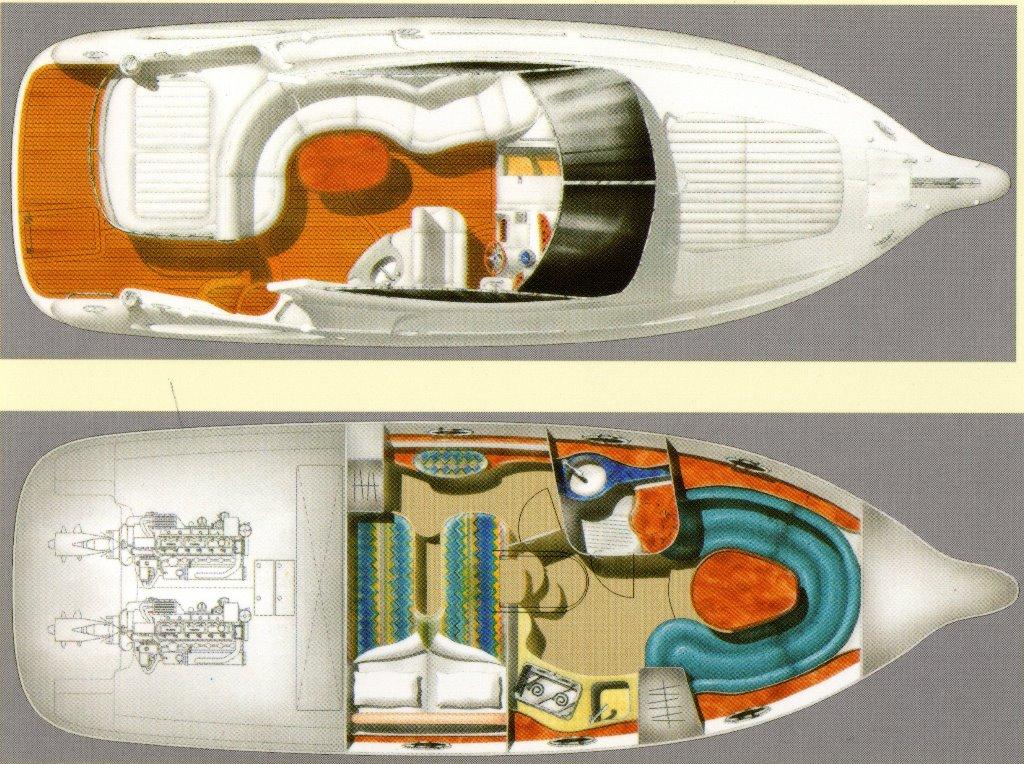 Propulsión: Motores gemelos Volvo Penta con stern drives, 224 CV cada uno