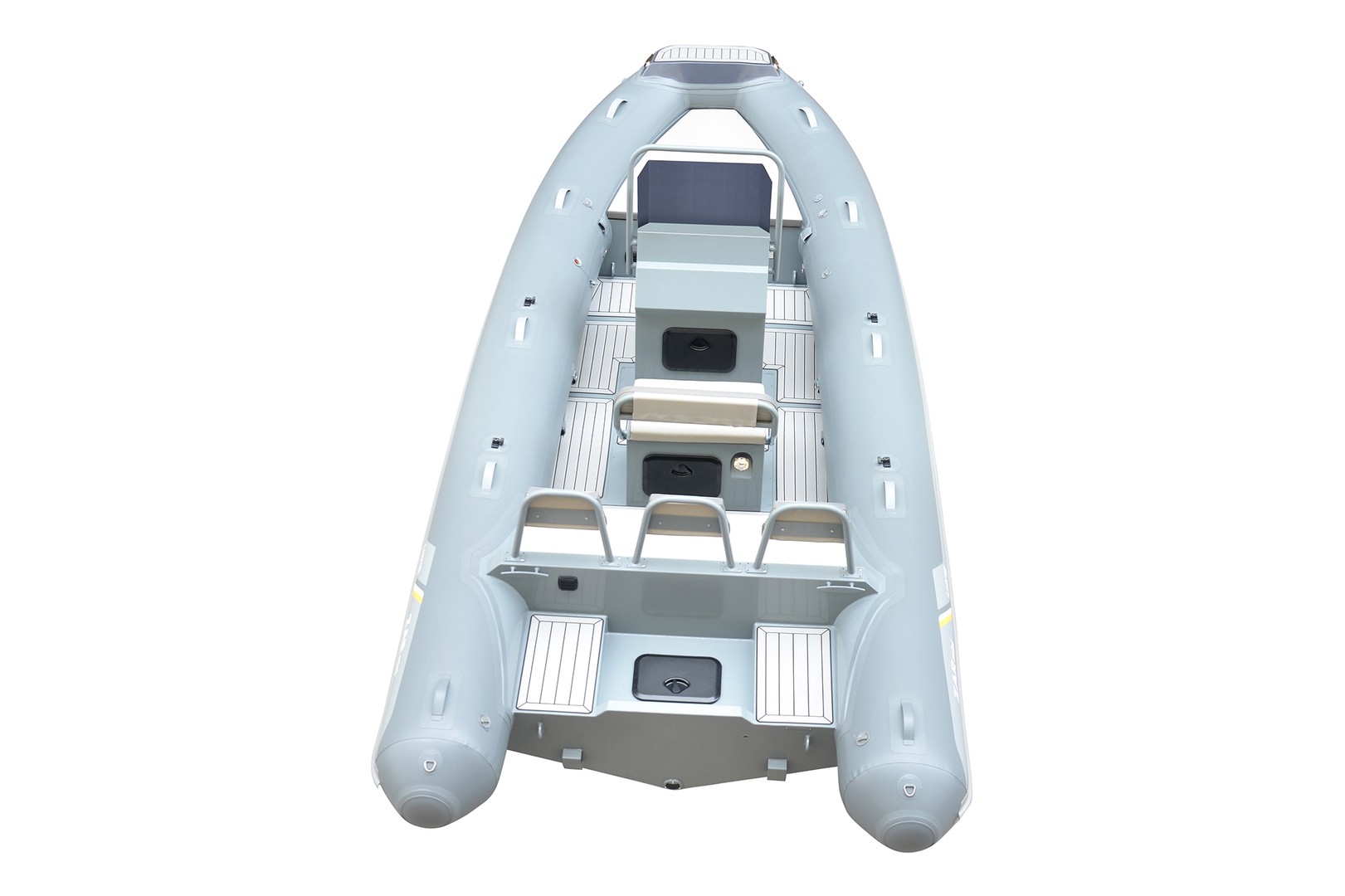 Due to the very light aluminum hull it can go very fast and plan easily with a smaller engine. The hull will not face any problems of Osmoses or gel coat defects like a fiberglass hull. It will also last longer and not become heavier during use. The aluminum hull is being specially manufactured and powder coated to resist corrosion and saltwater. You will have a lot of fun with your ZAR mini™ RIB.