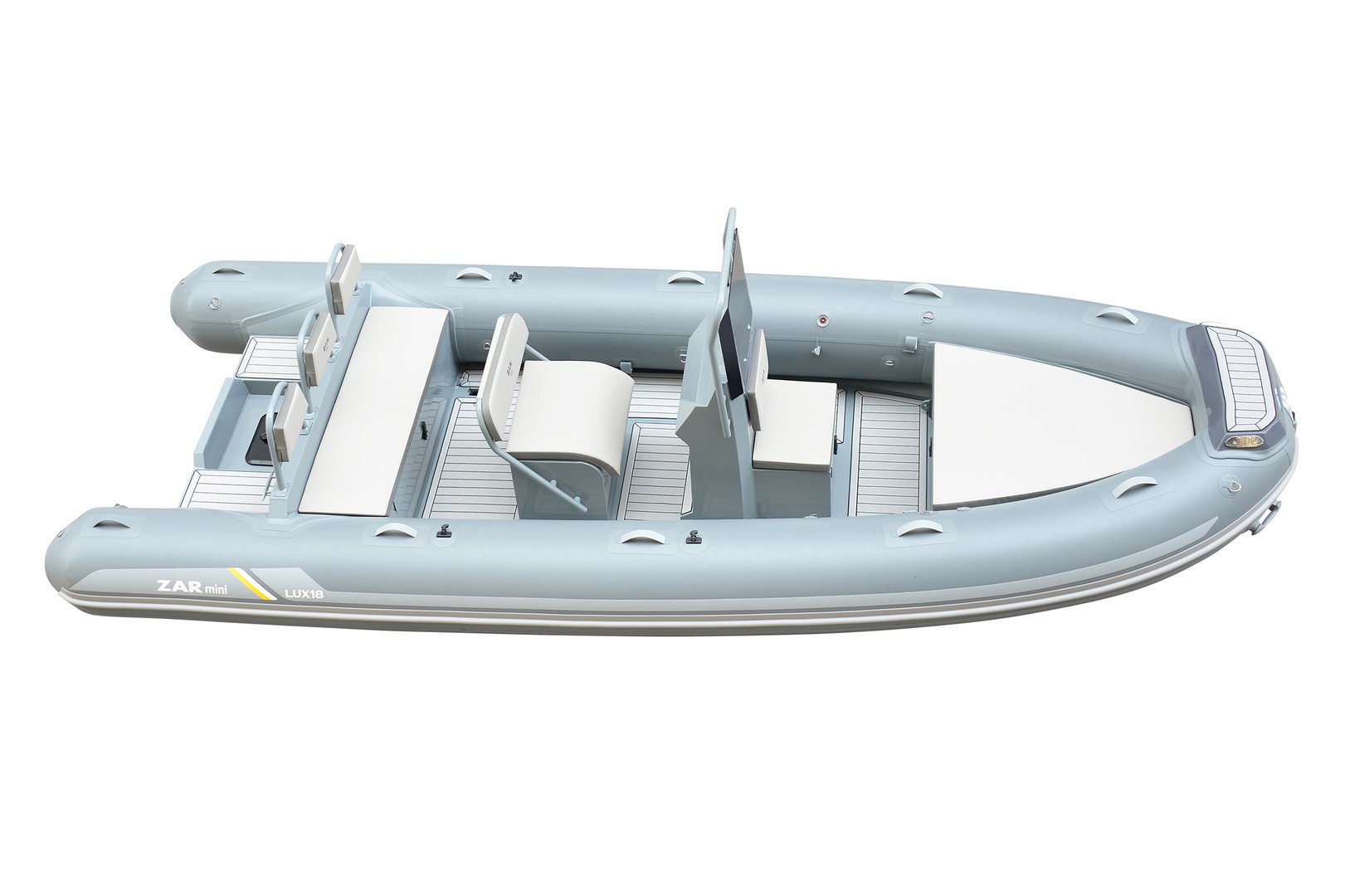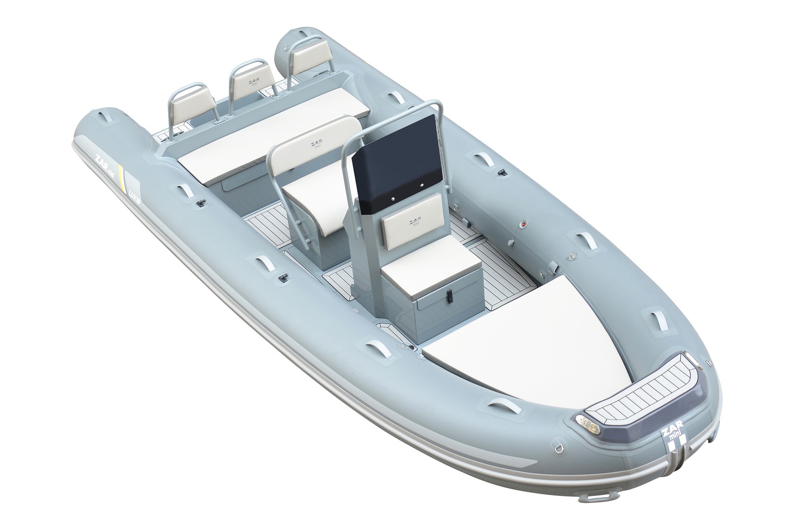 Our beautiful ZAR mini™ LUX line has different sizes and versions to offer. All boats are equipped with a bow locker, engine well and a flat double flooring. The design of the hull and cockpit is selfdraining. All boats offer as standard equipment a Teak design EVA floor, bow cushion, bow backrest, bow step plate, keelguard, bimini holder, backrest, luxury steering console and a reinforced hull.