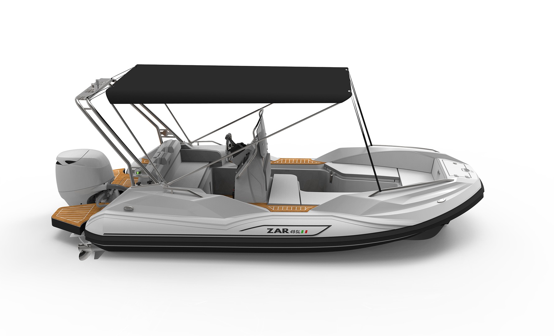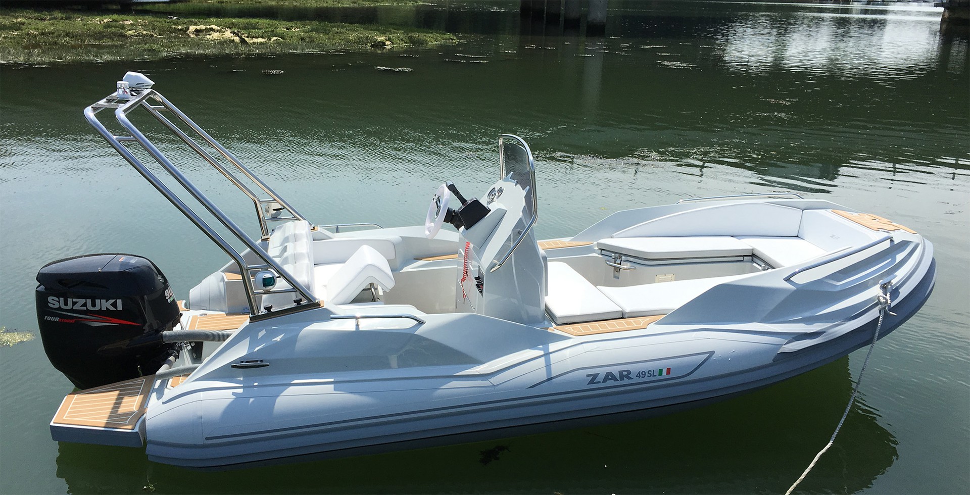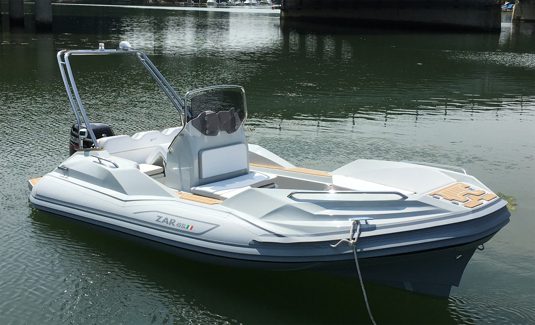 Indeed a new line of ZAR, the SPORT LUXURY line. A new series, however unchanged, that brings together all of the winning features that have led ZAR to be the point of reference in the world of inflatables. It still maintains the great qualities of roominess, comfort, design features and that special quality of navigation due to the unique ZAR hull design. The design of this new series, while remaining on track marked by all emblazoned ZARs’, rushes towards rays of light, unexpected angles and cuts surfaces which create harmony in the parallel difformity of the lines. The first of this new family is the ZAR 49 SPORT LUXURY: a small / large boat to discover with attractive and innovative design, first level standard features, and an enormous amount of attention paid to the detail and construction.
