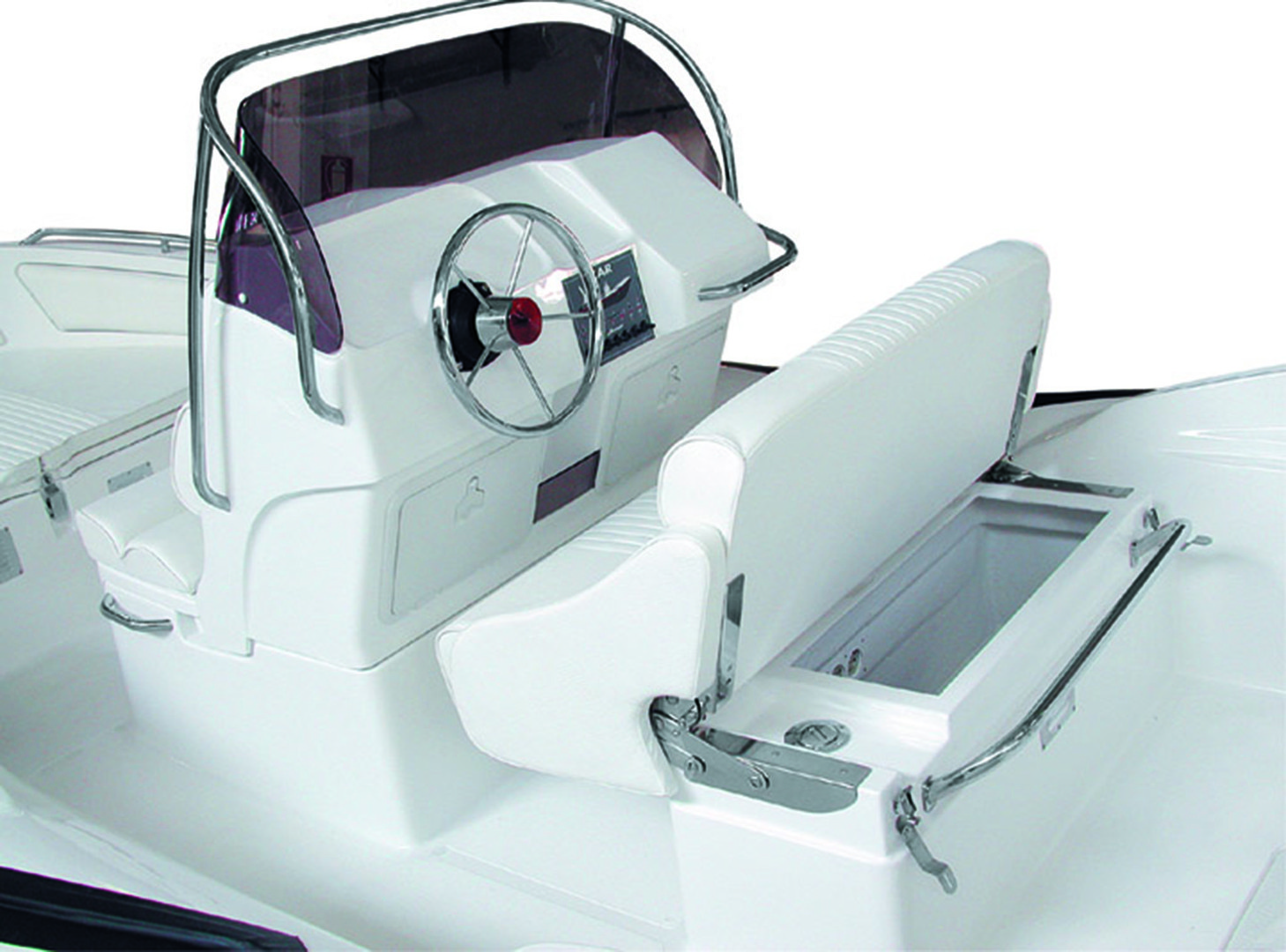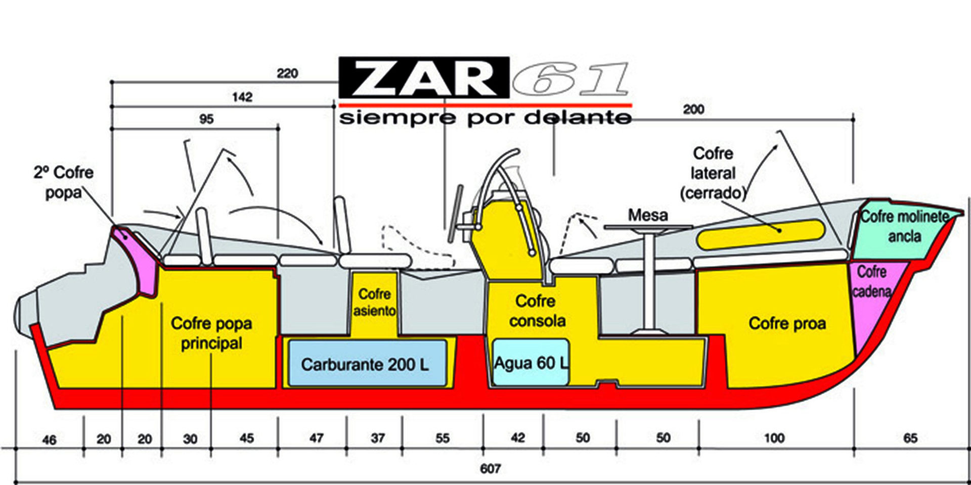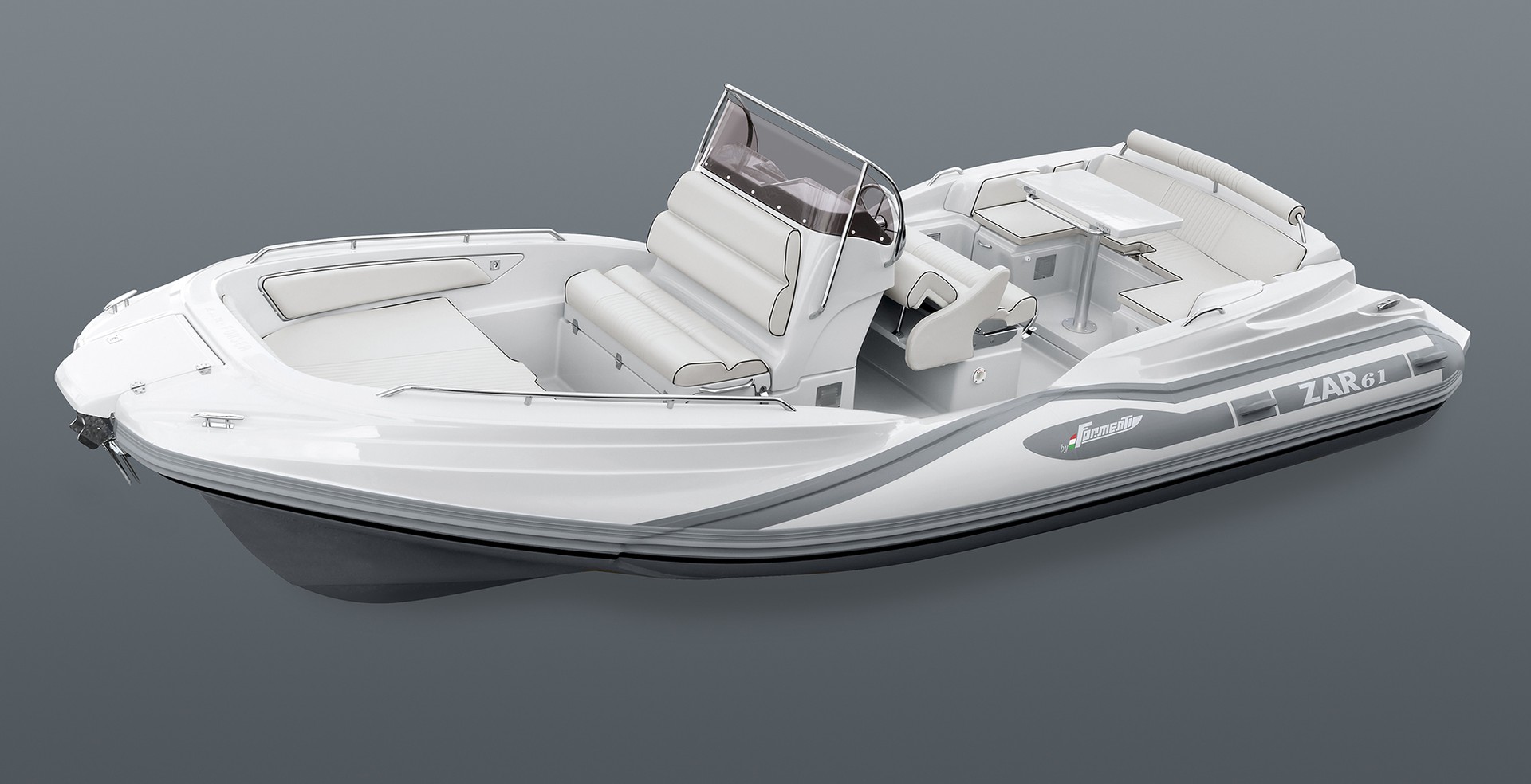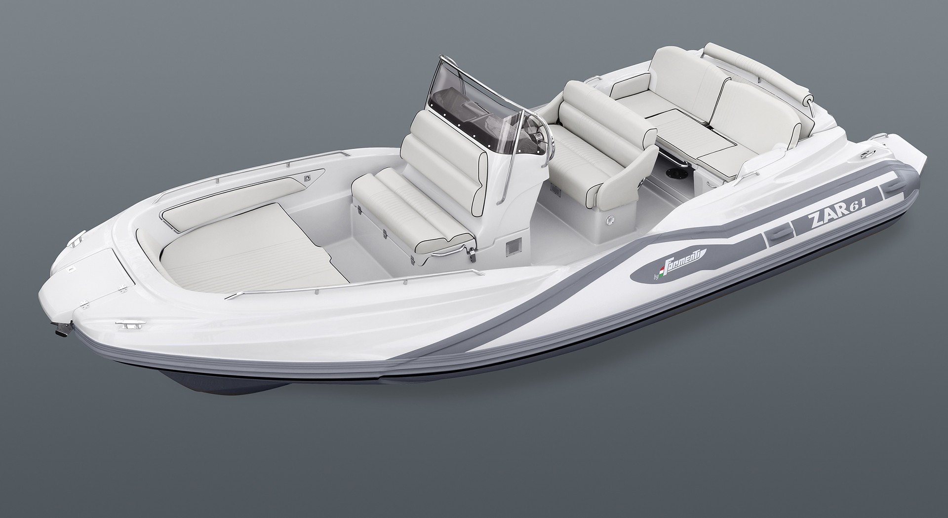 The same equipment as the ZAR 61 but equipped with dinette back with U-shaped sofa. The perfect balance between all the components is the value of this fantastic semi-rigid. Easy to tow and store, the ZAR 61 with a length of six meters offers its occupants all the space and comfort for a life on board first class. It has 10 chests where you can keep everything you can imagine, 8/9 seats facing the bow built with an anatomical profile, two huge solariums larger than two double beds, a control console with double seat as functional as in a luxury car, The driver’s seat is carefully designed for a perfect navigational position (both standing, semi-seated or seated). The design of the ZAR 61 is the most modern and practical that exists today. And above all, its fairing, worthy of a 7 meters, long and deep for a very soft and dry impact on the waves, fast and safe even in the worst sailing conditions, agile and manageable in port maneuvers.