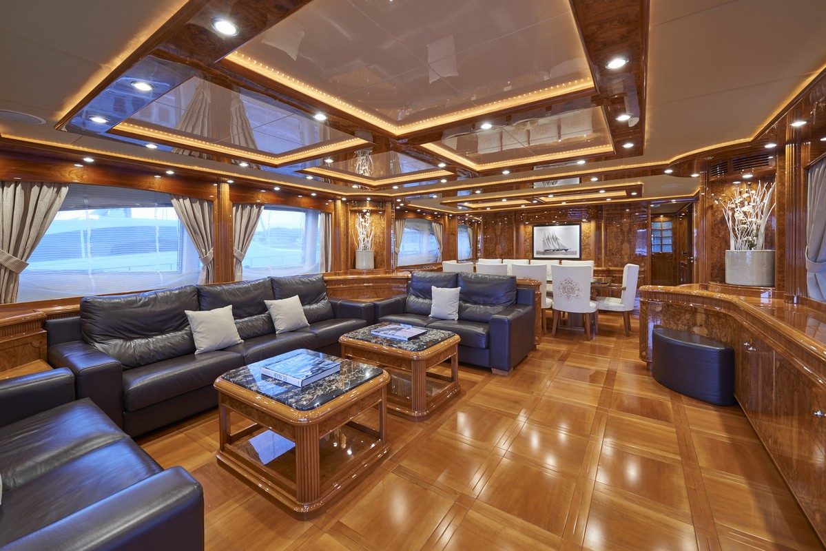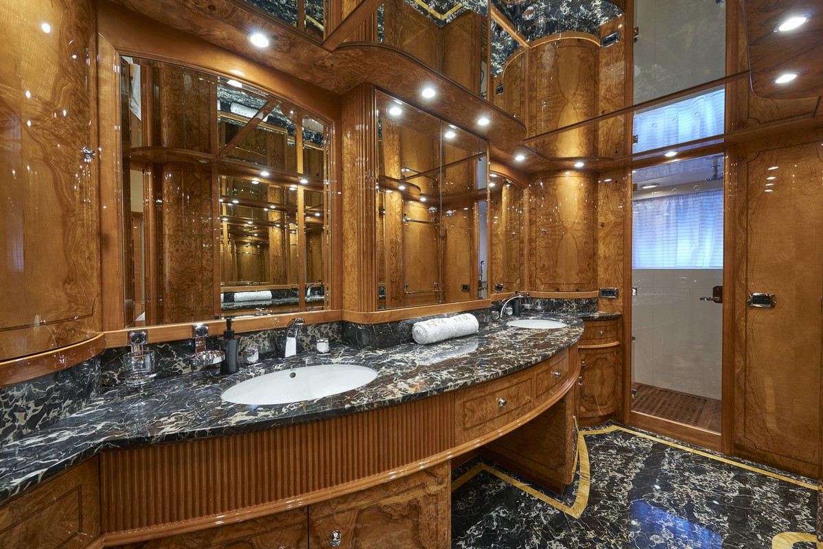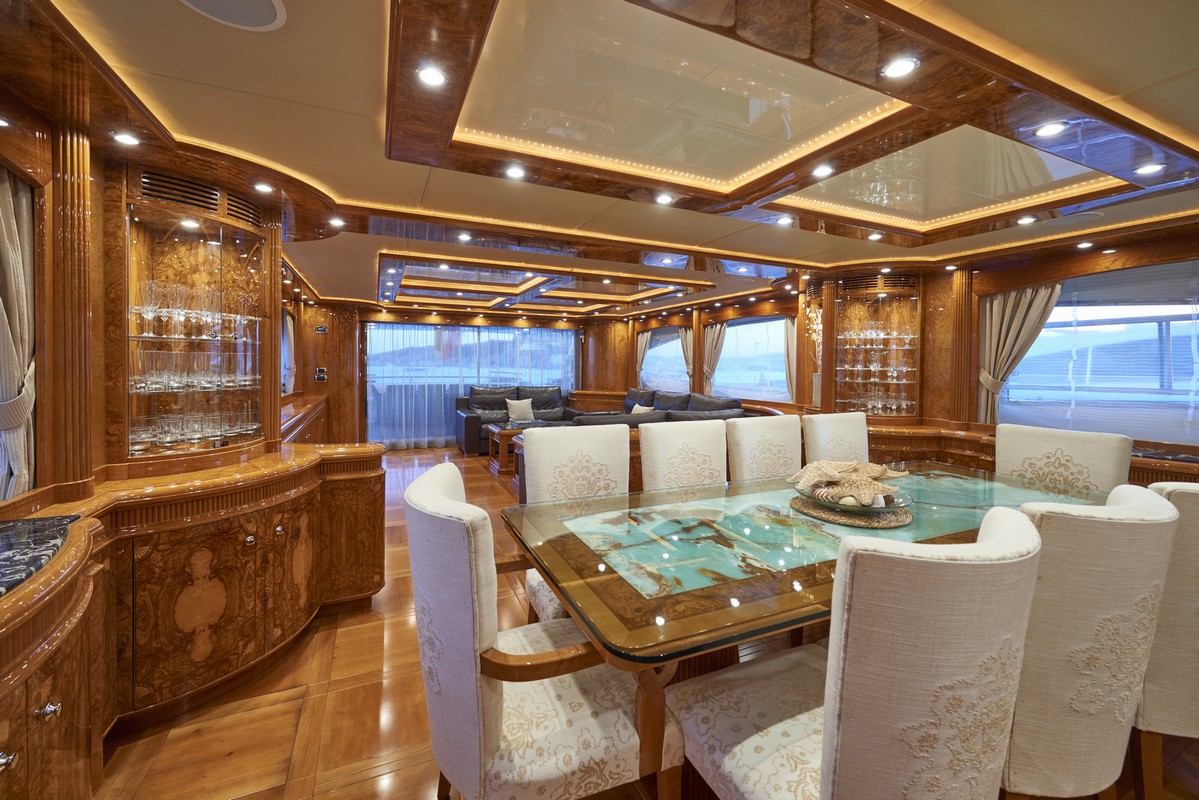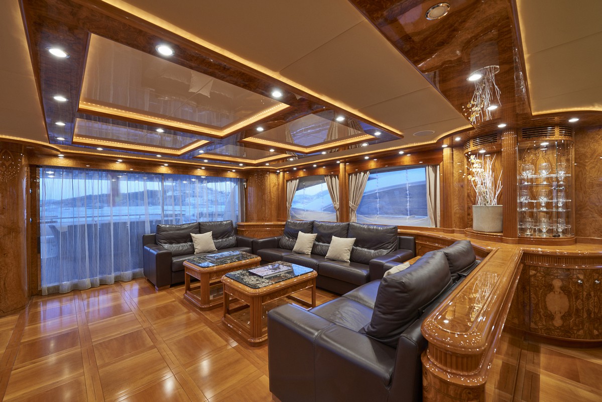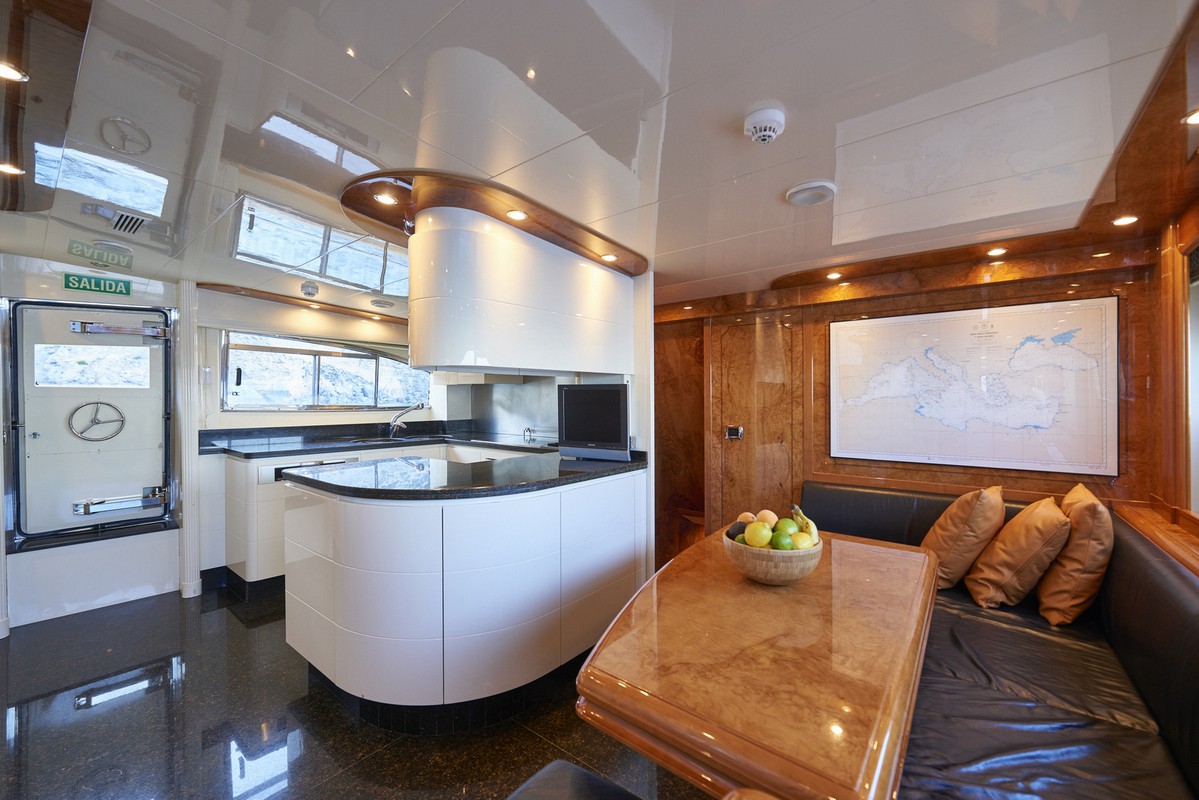 Timeless elegance, interiors in noble woods, marble and leather. Exterior with large lounge areas, solariums and bar. Night capacity for 10 + 1 + crew in its five double cabins and single. Crew formed by five professionals at your service. Live Ibiza on board our Astondoa 102 as you would have never