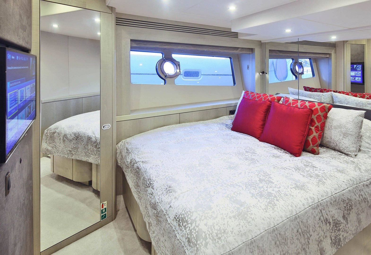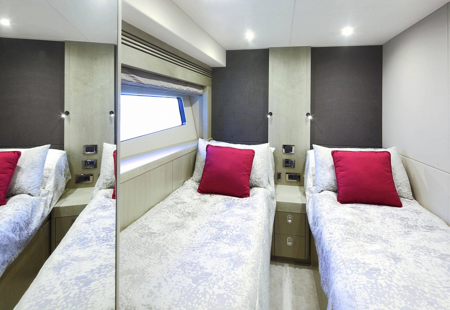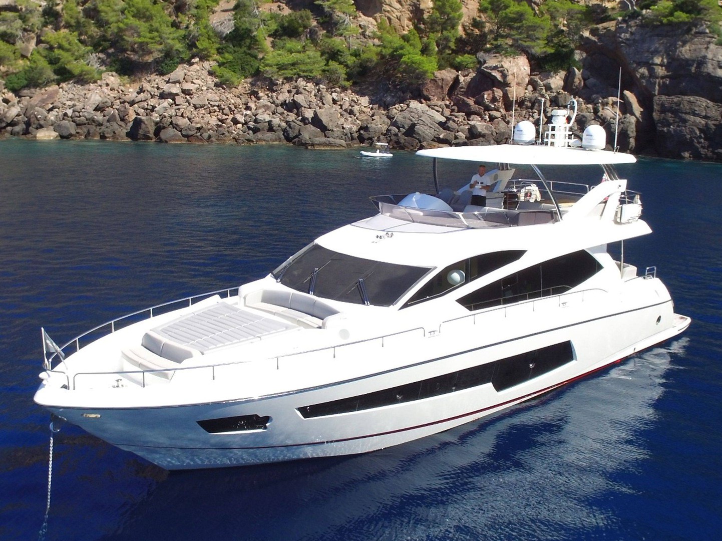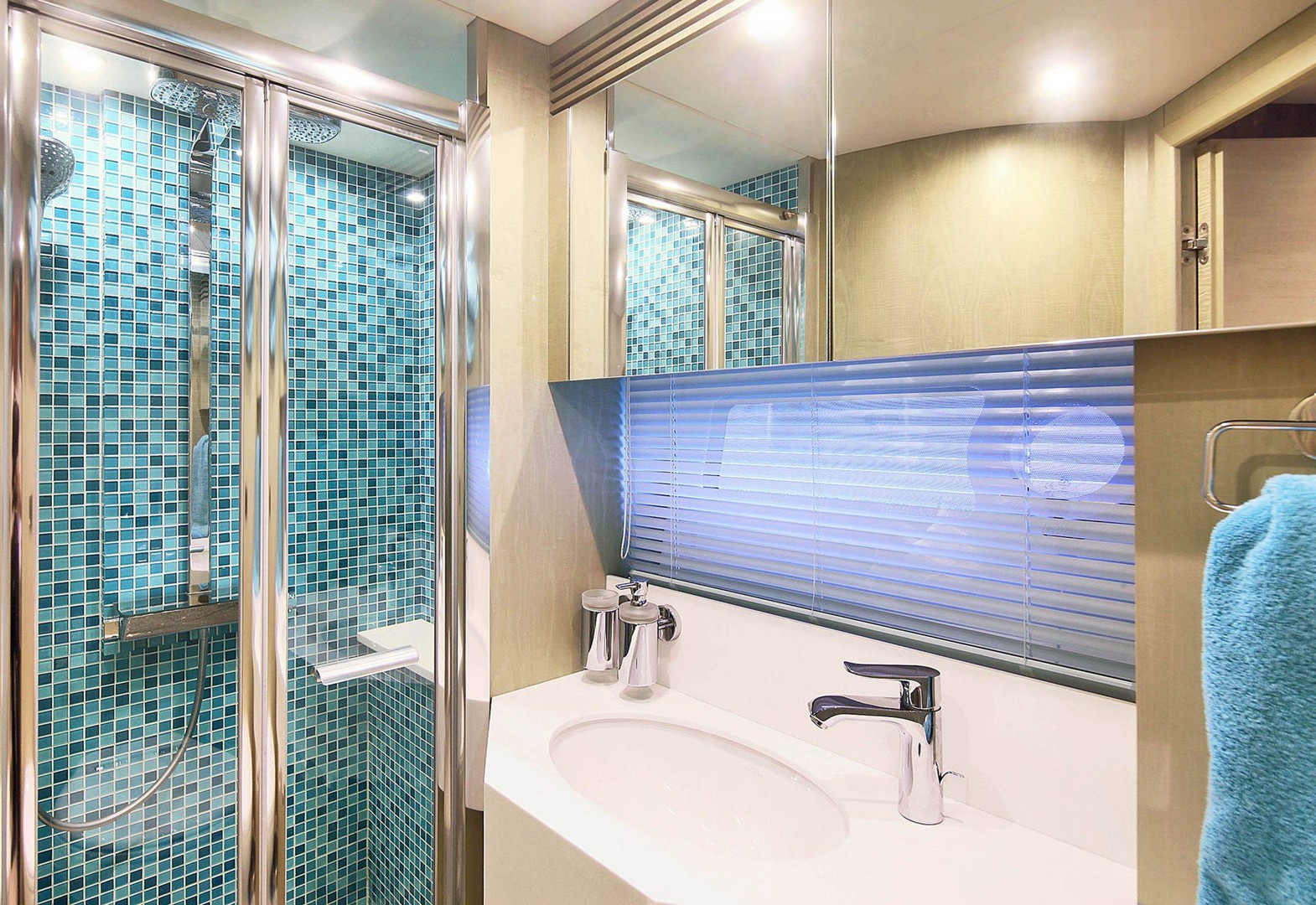Equipped with air conditioning, stabilizers and WIFI. Three spacious decks to enjoy comfortably. Dinning and seating sparated areas in main deck plenty of natural ilumination thanks to Z shaped windows. In low deck 2 double suites and 2 twin bed cabins. Outdoor playground with wet bar, sun pads and dinning area. Water toys: Williams 385 Jet Tender on hydraulic swin platform, wakeboard, water skis, Stand Up Paddle and towable tubes,