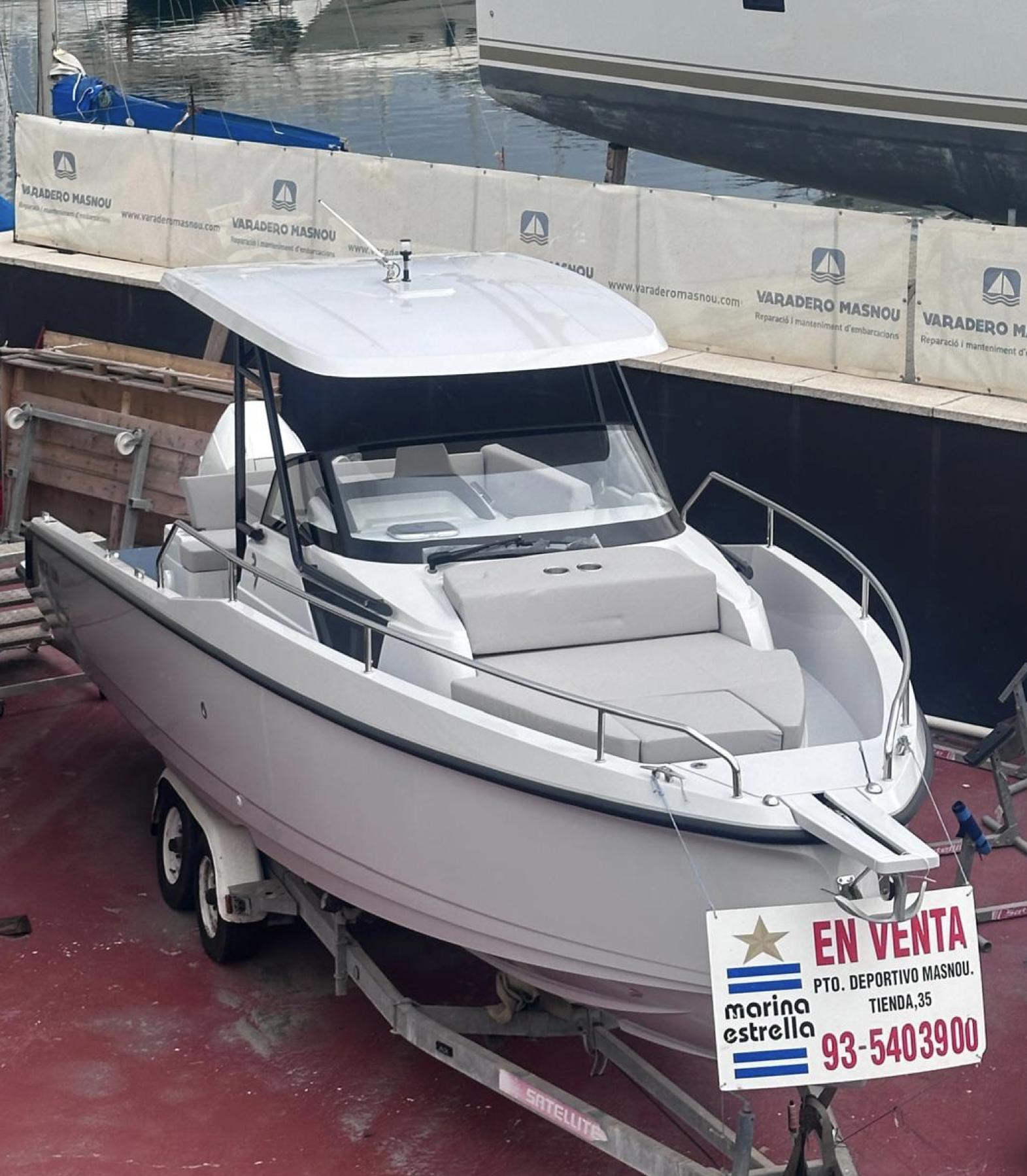 T-Top de fibra de vidrio con focos y acabado en gelcoat (gris claro, RAL 7047).