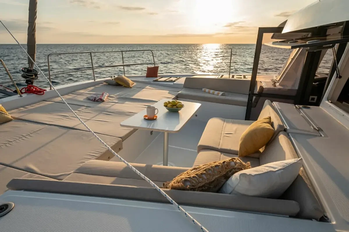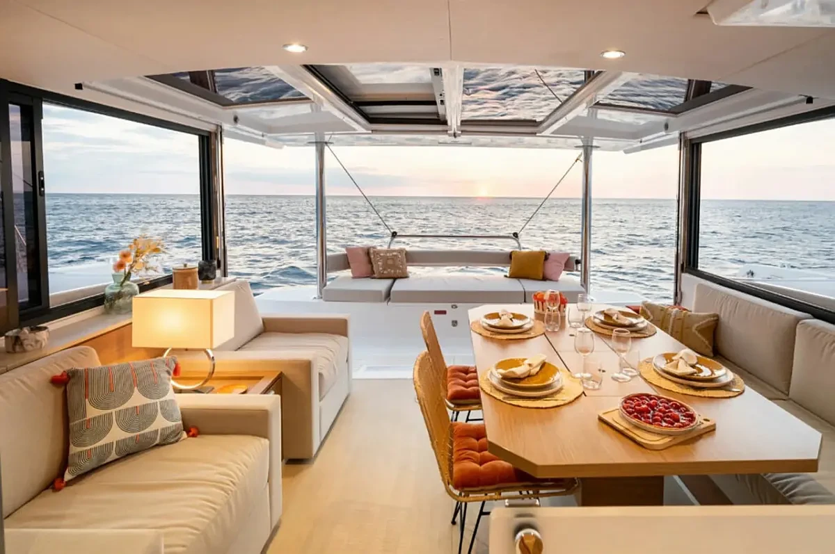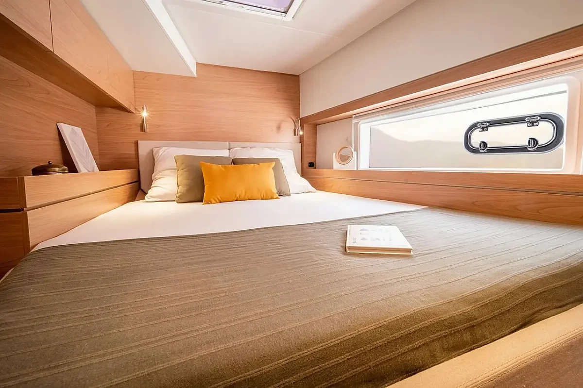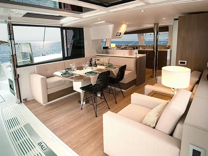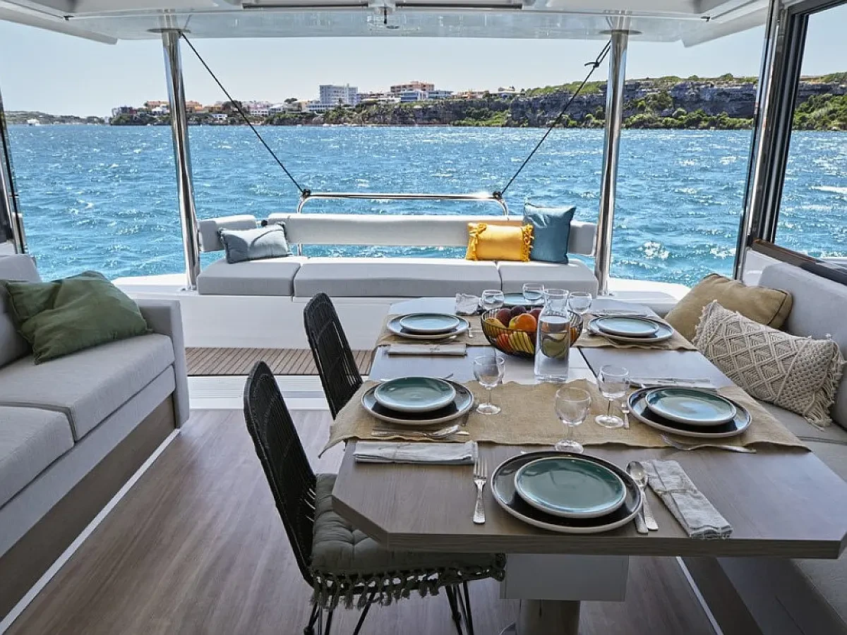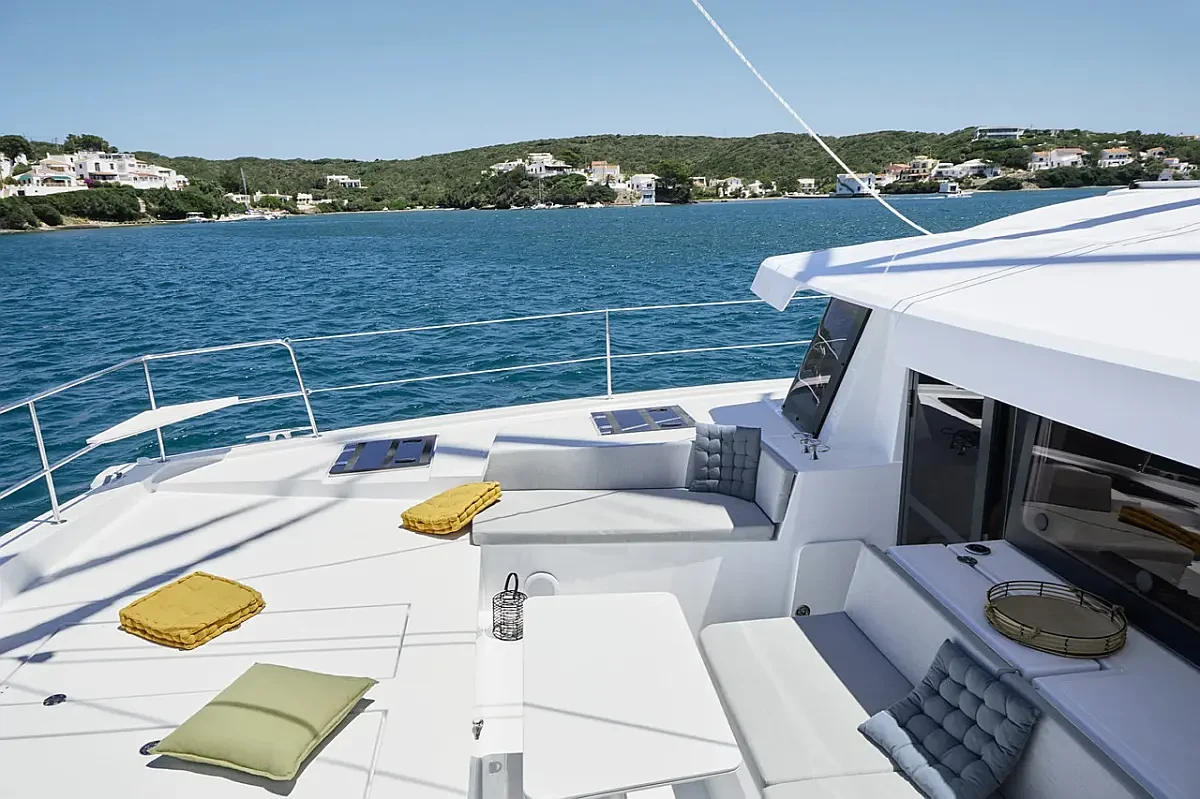 Every detail has been designed for ease of movement and safety, with wide, well-planned walkways throughout the boat. Whether you are sailing or anchored in a quiet cove, the Bali 4.4 Olivia offers multiple spaces to enjoy the sea in complete freedom and comfort.