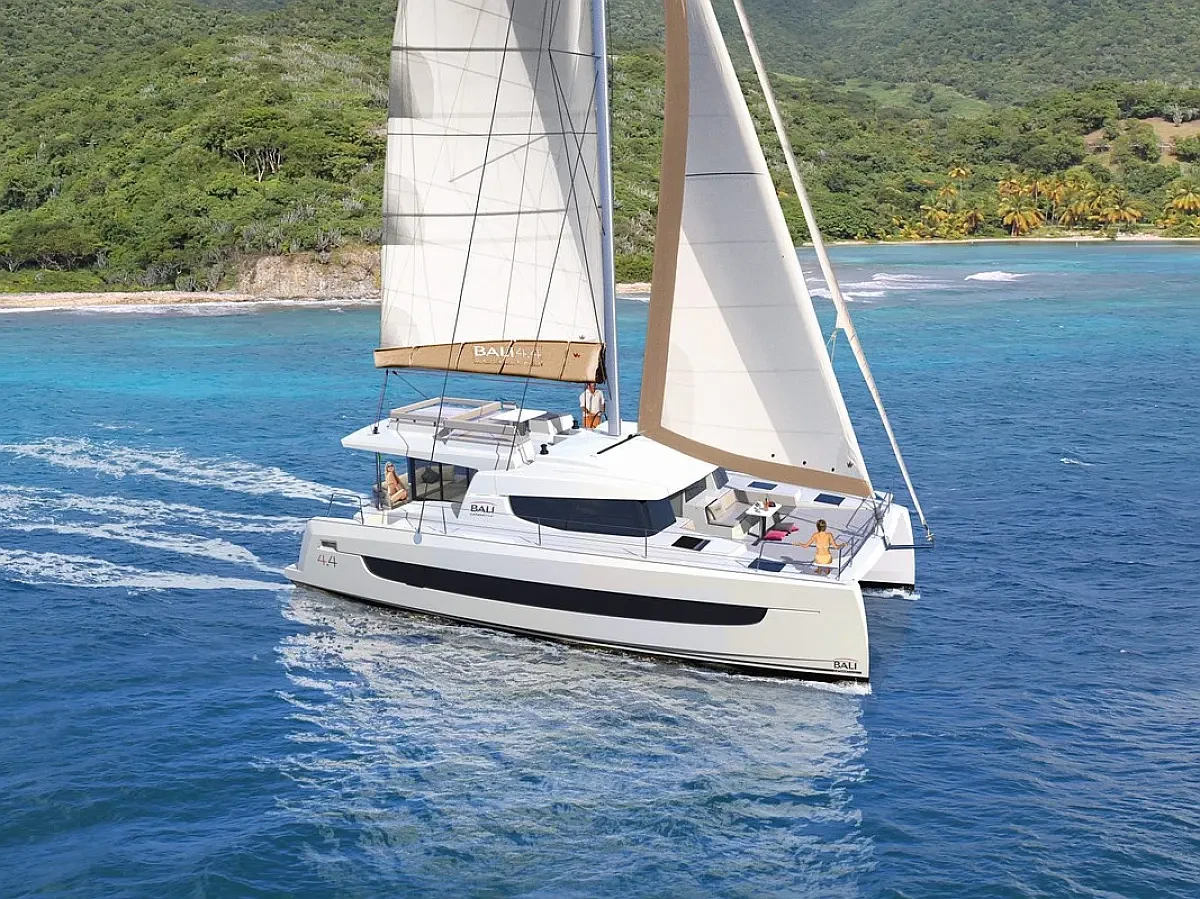 The Bali 4.4 "Olivia" is designed for you to enjoy the sea to the fullest, in total comfort and in the open air. With a length of 13.75 metres and a beam of 7.4 metres, this catamaran offers large outdoor spaces that are spacious, comfortable and perfect for relaxing at any time of day.
