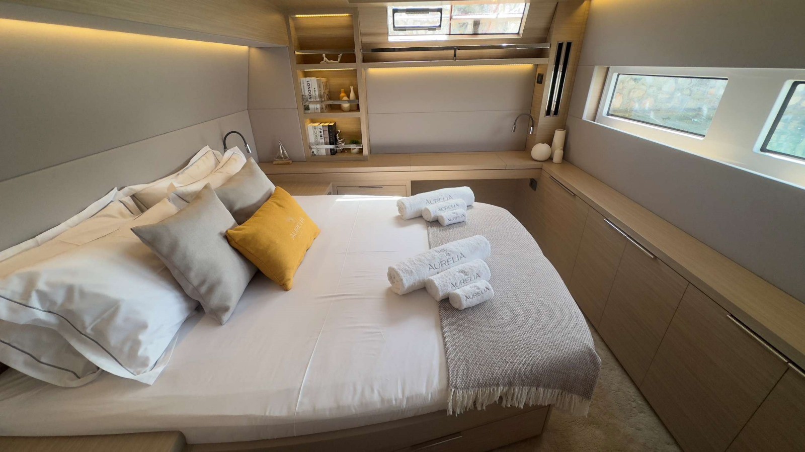 Aurelia and Valinor are two modern, well-equipped catamarans, ideal for those looking for a crewed catamaran charter in Greece. Choose the one that best suits your needs based on its interior layout, nautical toys, or decor style. Whichever you choose, fun and comfort are guaranteed throughout your journey!
