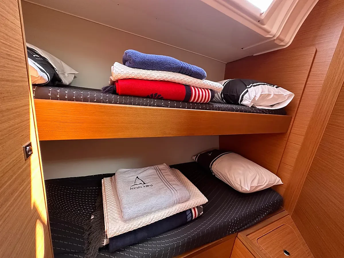 | 3 double cabins, 1 double cabin with bunk bed, 1 crew cabin, | ||