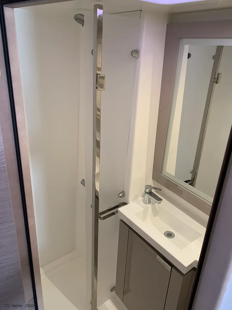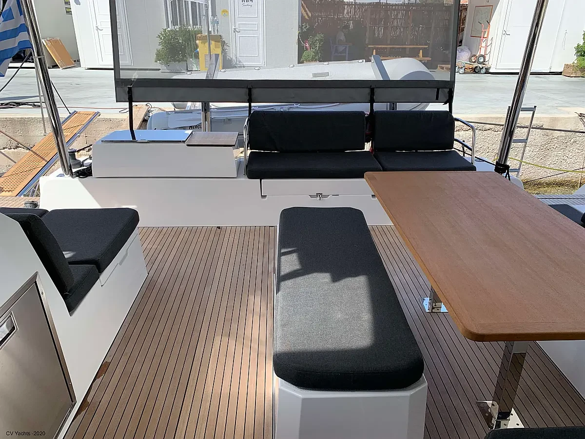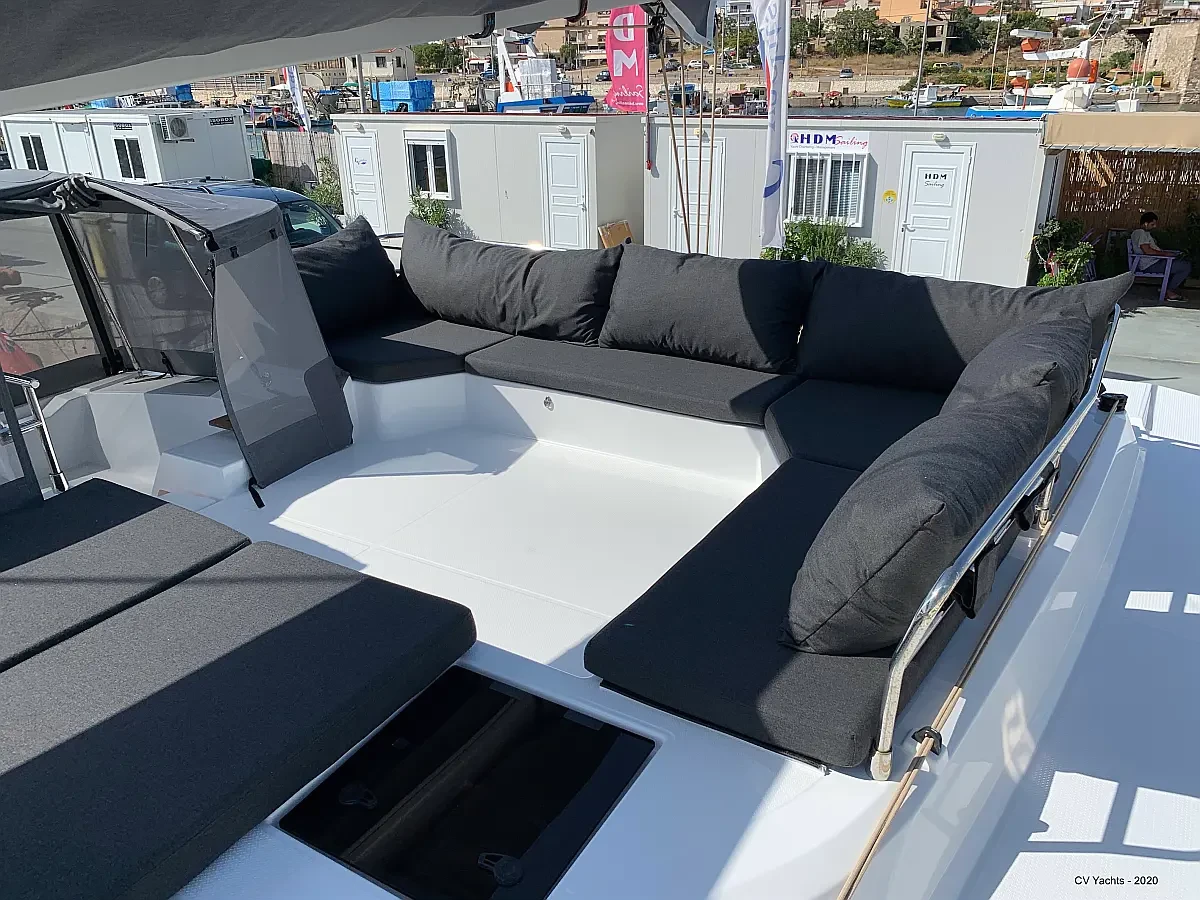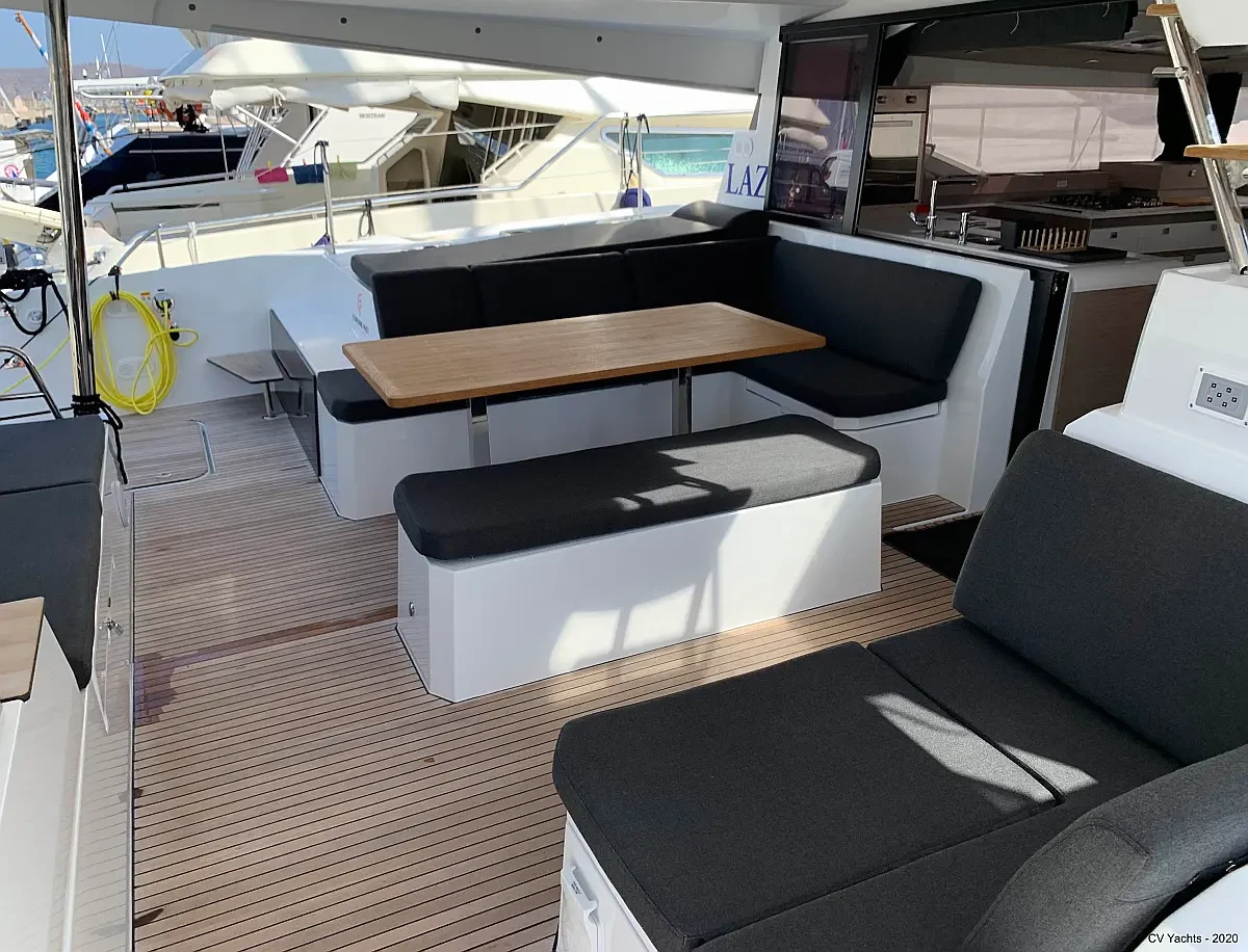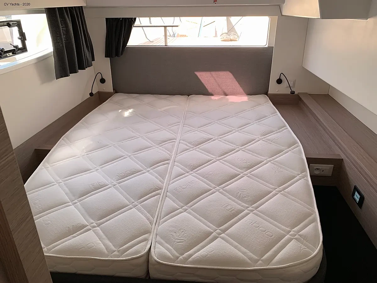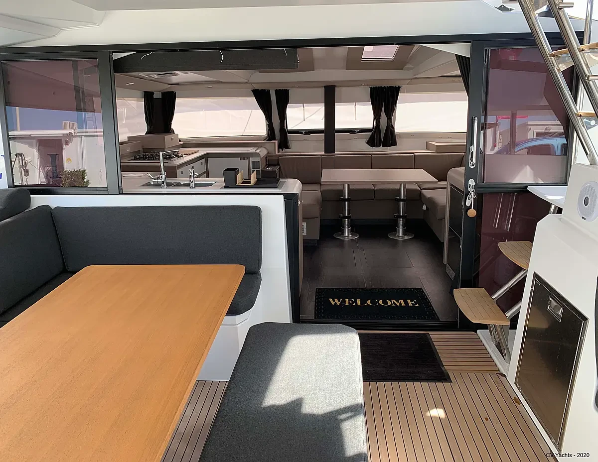 Elba 45 is designed to delight the eye and surprise you. The energising line of its inverted bows and the harmonious layout of its living spaces will captivate any sailing enthusiast. Dynamic and elegant, the helm of our new catamaran offers easy manoeuvrability and will delight you with its performance. A true cruising catamaran, bathed in magnificent light, aboard the Elba 45 you will feel as comfortable as at home, with 3 refrigerators, a generator and solar panels so you don't have to worry about staying anchored longer, and air conditioning in all cabins and the saloon.