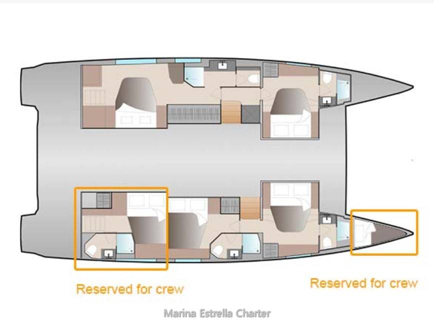 “Papa Charlie” comfortably accommodates up to 8 guests in 4 double guest cabins, each with its own ensuite electric bathroom, plus 2 separate crew cabins for total privacy. The layout is designed to offer space, comfort, and tranquillity, with a modern interior bathed in natural light and crafted with quality finishes throughout.