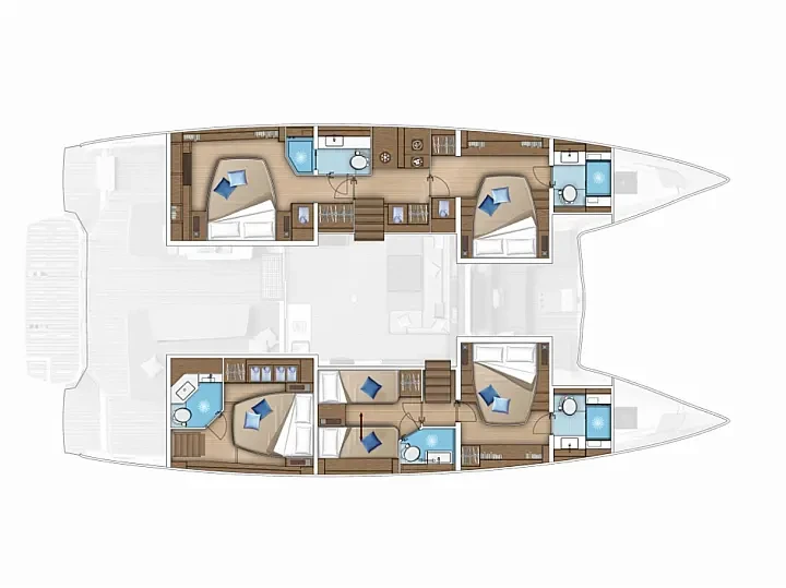 5 double cabins with en-suite bathrooms to accommodate 10 guests in privacy and spaciousness. The crew have their own cabins