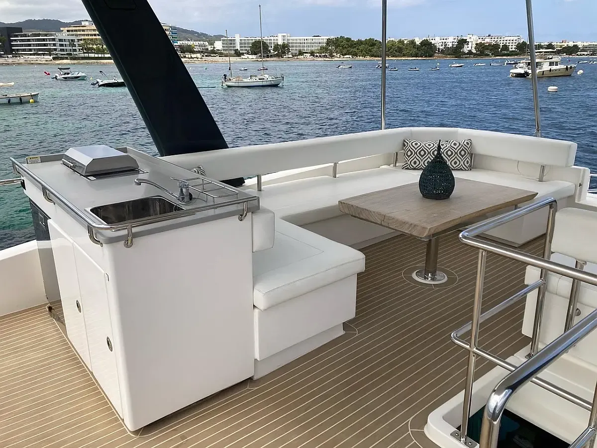Pauline is a motor catamaran designed for enjoying the sea in complete comfort. Its wide bow and spacious flybridge offer the perfect place to sunbathe, relax and share unforgettable moments with family or friends.