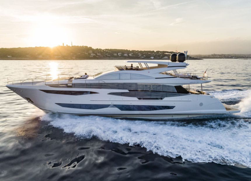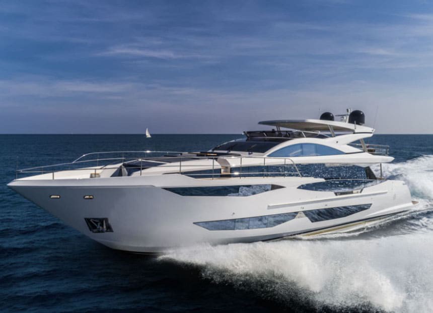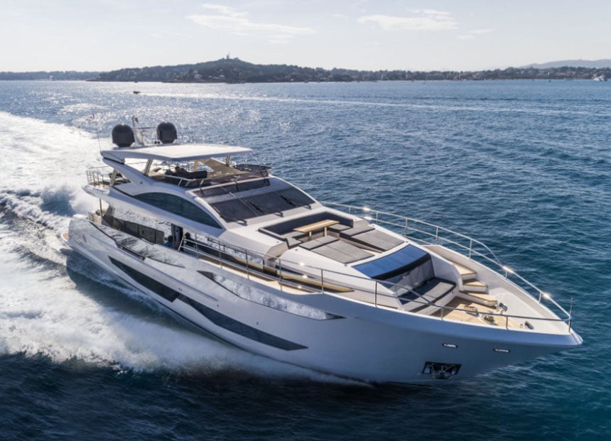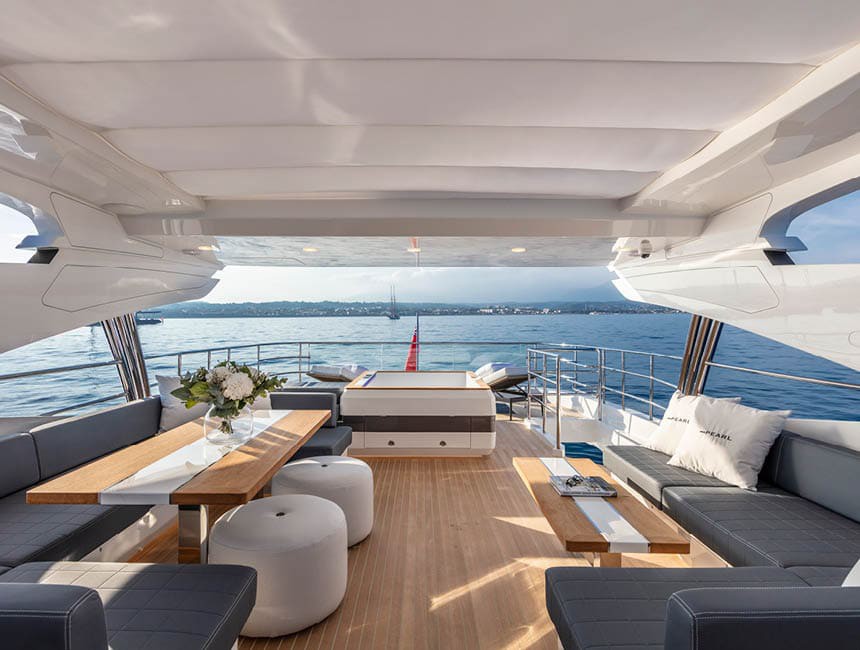 The Pearl 95 is a luxury motor yacht that combines contemporary design, generous interior volumes and smooth, comfortable navigation. Designed to deliver a high-end charter experience in the Balearic Islands, she stands out for her expansive outdoor areas, bright main salon and an interior layout focused on privacy and comfort.