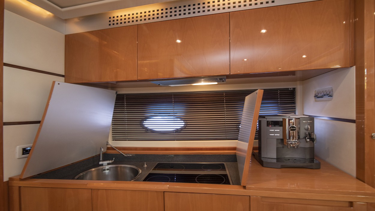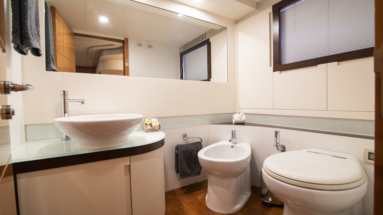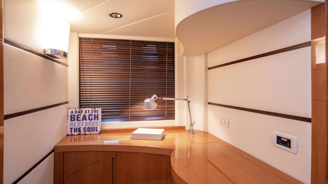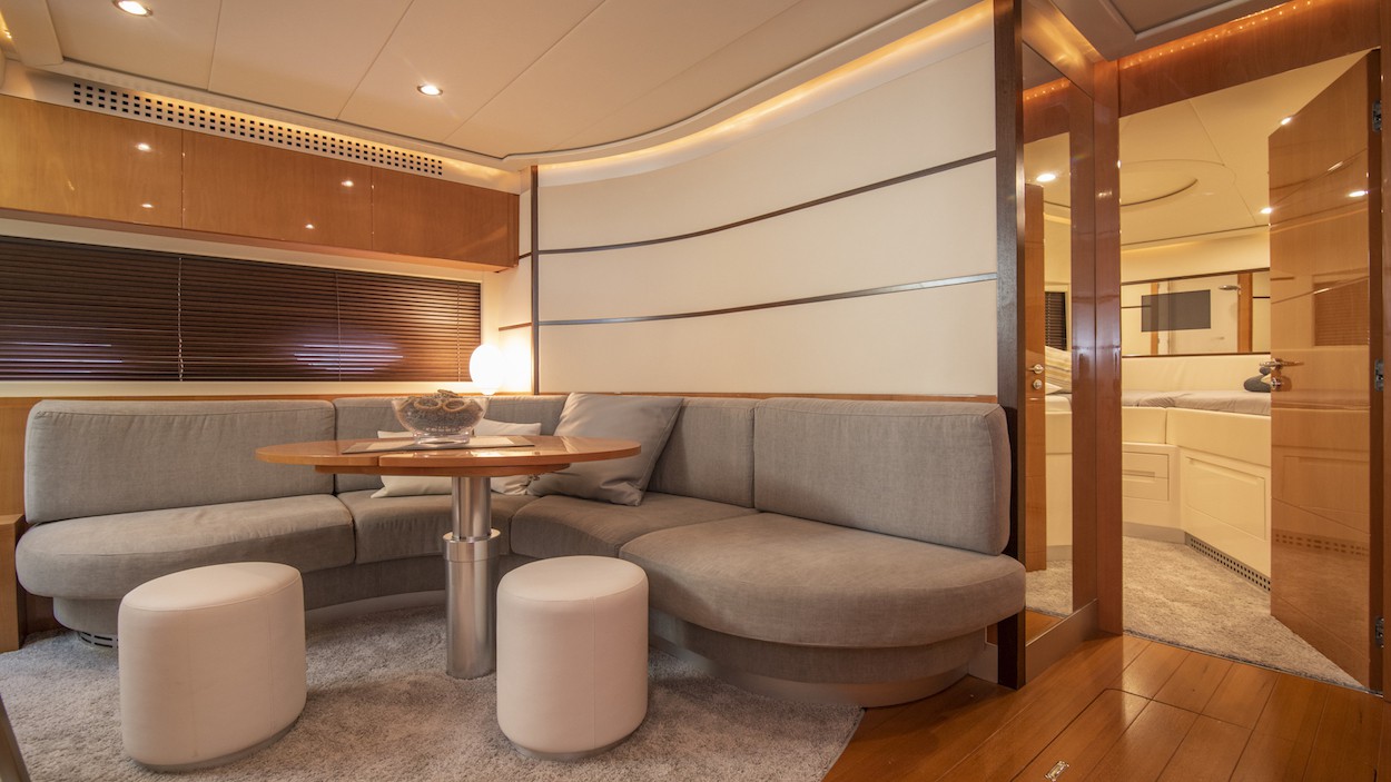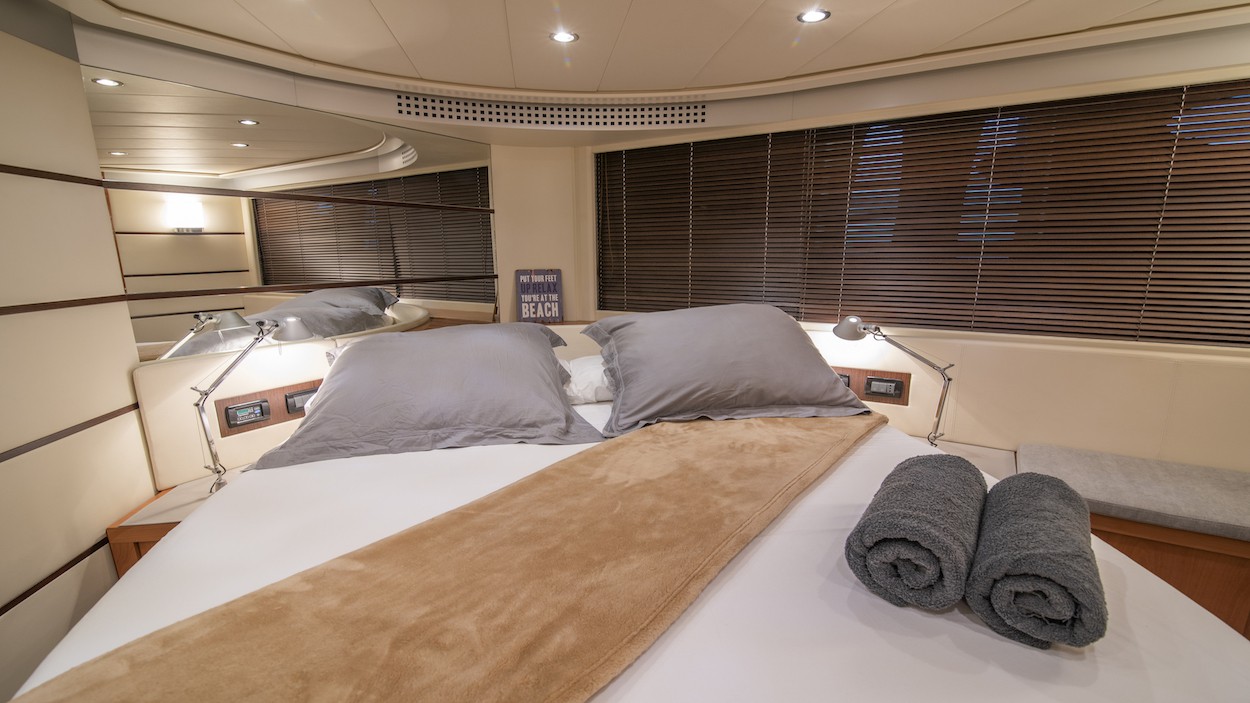 With a capacity for 6 people in 2 double cabins and 1 twin cabin, the Pershing 62 can comfortably accommodate up to 12 passengers on day charters.