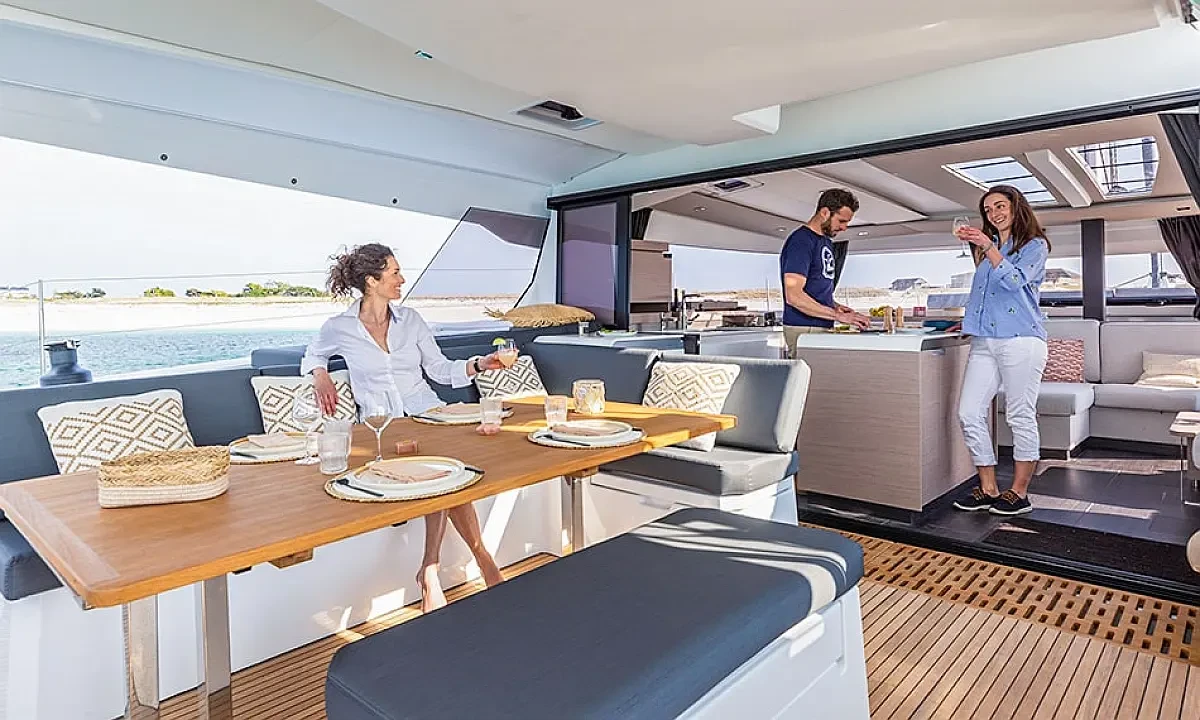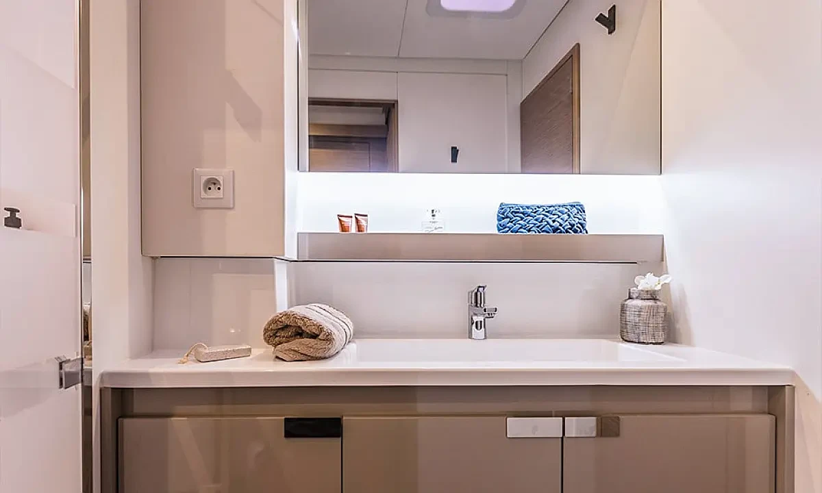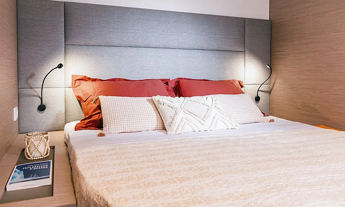 Los huéspedes disfrutan de camas queen size con ropa de cama de primera calidad, potente aire acondicionado en cada camarote y en el salón, y amplios cuartos de baño con zonas de ducha separadas para el máximo confort y comodidad. Además, el yate cuenta con una completa lista de extras:
