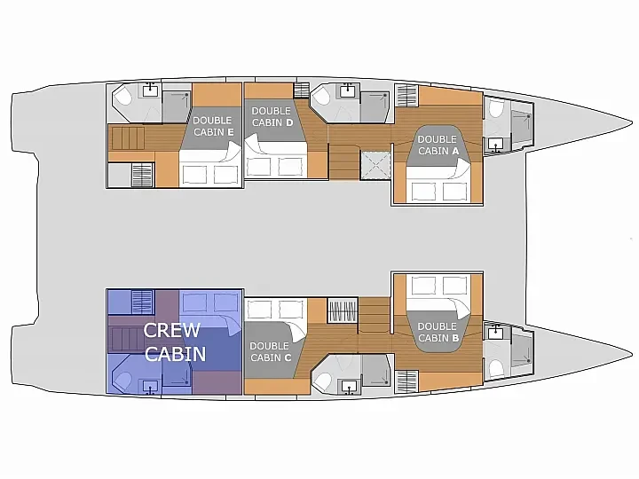 | 5 cabinas dobles, 1 cabina para la tripulación, | ||