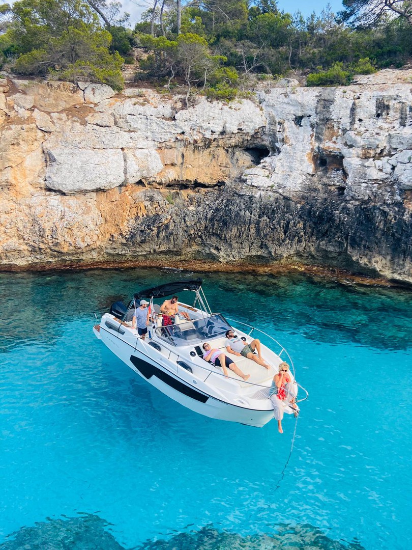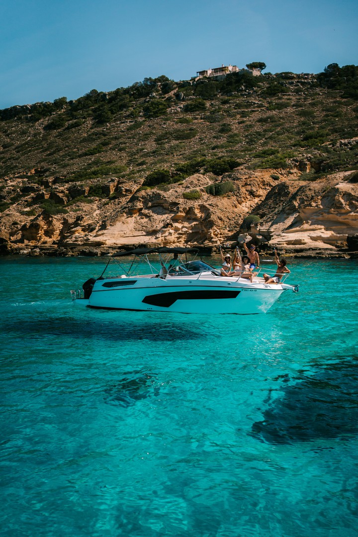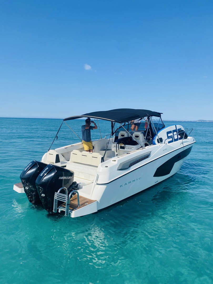 Bimini, Hélice de proa, Altavoces de bañera, Mesa de cabina, Molinete eléctrico de ancla, Ducha exterior, Capota antirociones, Bomba de achique, Escalera de baño, Solarium de proa, Bomba de achique eléctrica, Altavoces exteriores, Ducha en cubierta.