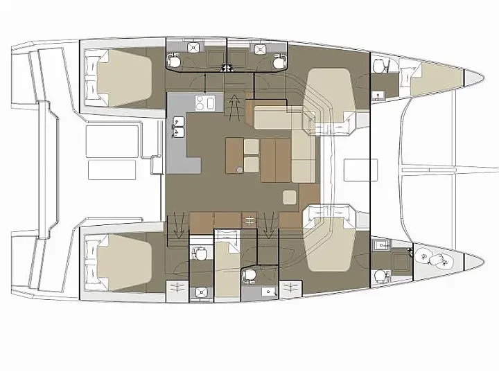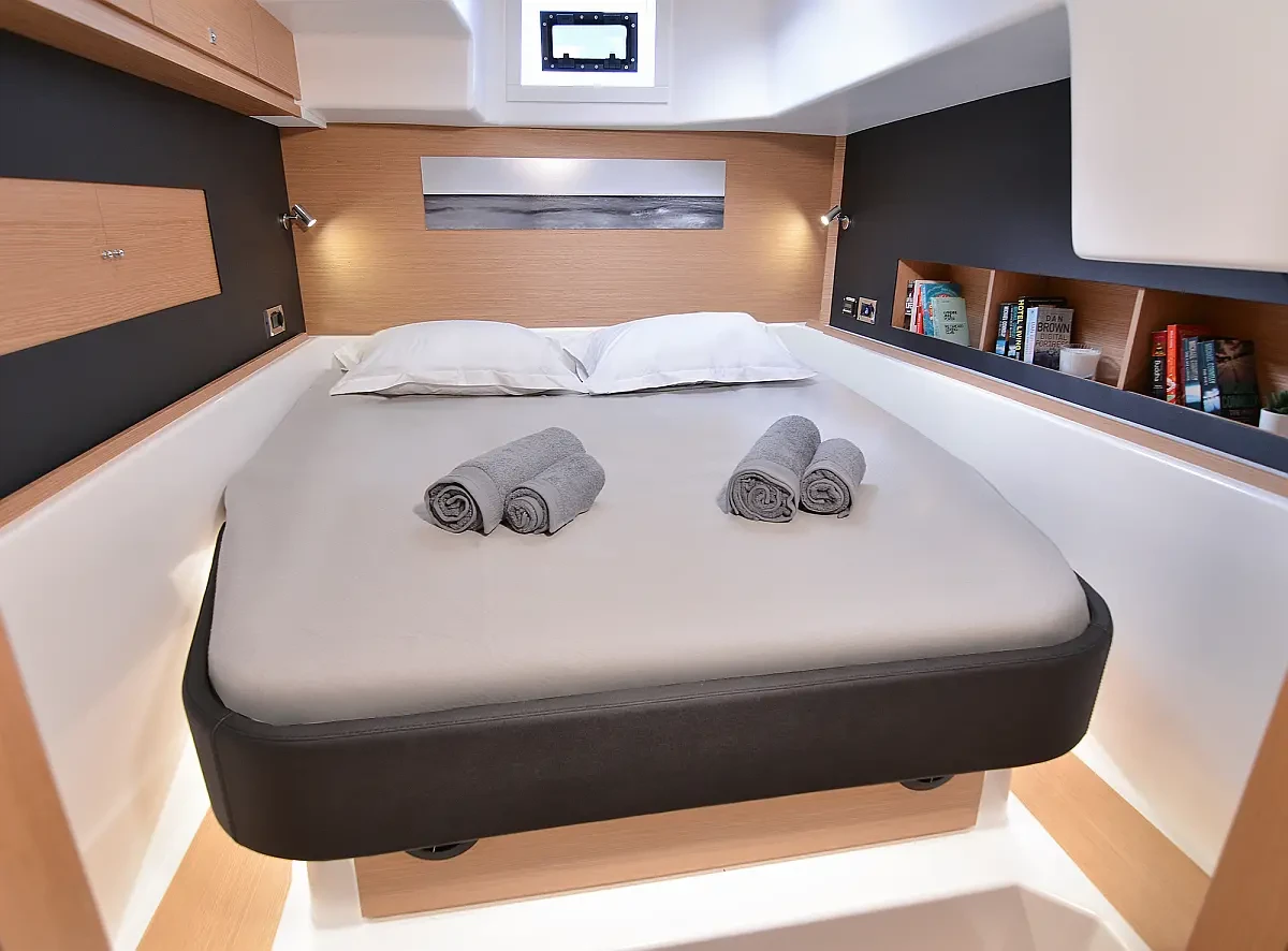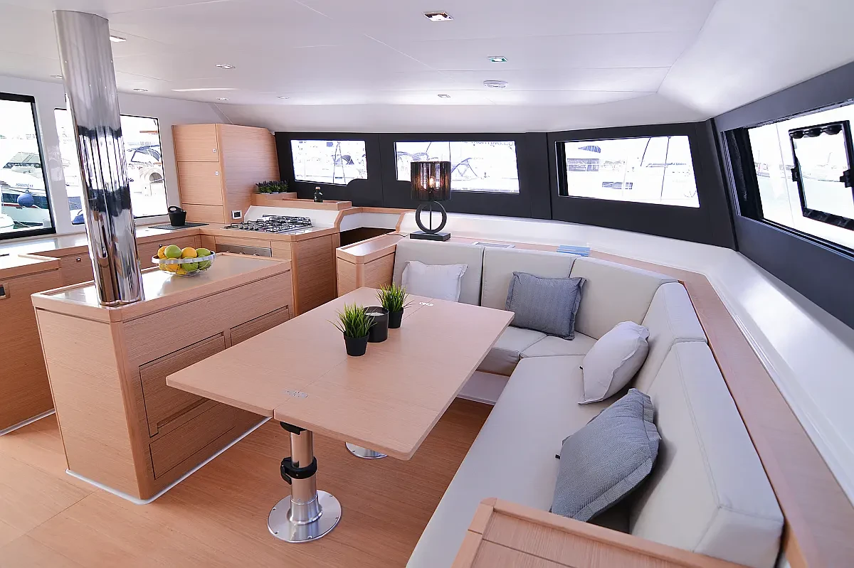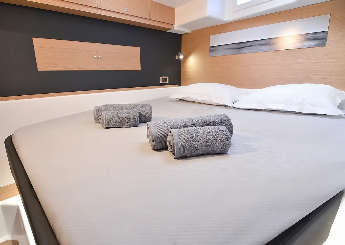 Hermosos interiores que aportan un toque de elegancia a su entorno. Cuatro camarotes dobles cada uno con su baño privado con artículos de tocador de lujo. Ilimitado de agua dulce (desalinizador), electricidad (generador) y aire acondicionado.