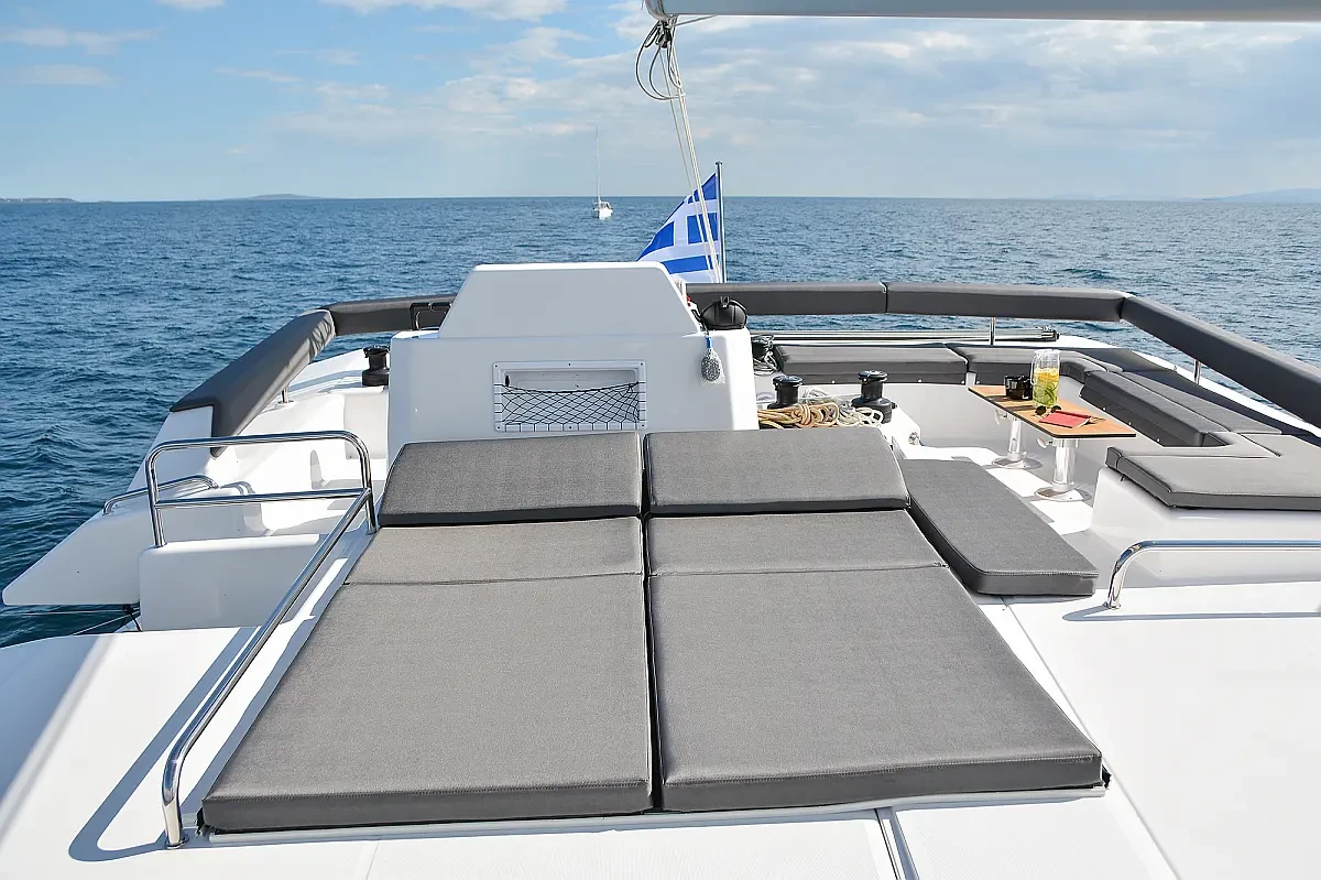 En familia o en grupo de amigos, navegar por Grecia a bordo de nuestro catamaran Dufour 48 aseguran unas vacaciones inolvidables. Con patrón y totalmente equipado con todo lo necesario para disfrutar al máximo de sus vacaciones. Todo lo que le queda por hacer es sentarse, relajarse y perderse en la magia de las islas griegas.