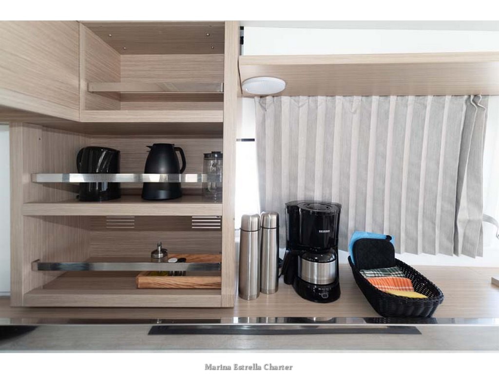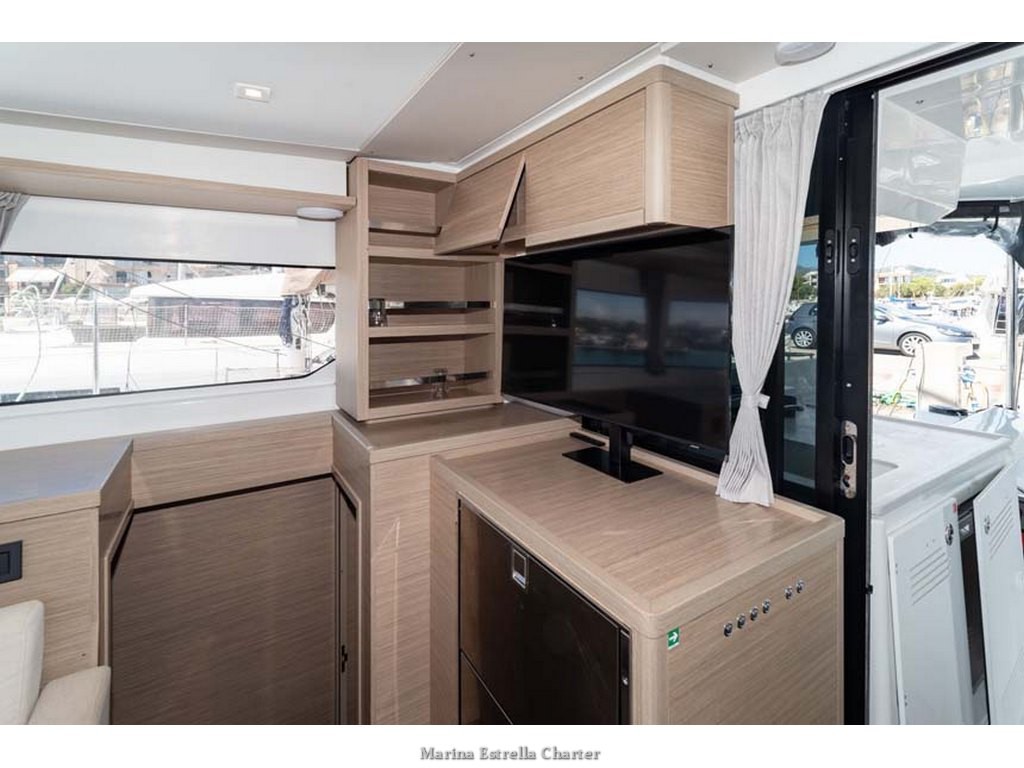 En cuanto a equipamiento, el barco dispone de aire acondicionado, generador y potabilizadora, lo que garantiza autonomía y confort tanto en puerto como en fondeo, permitiendo disfrutar de la navegación con total tranquilidad.