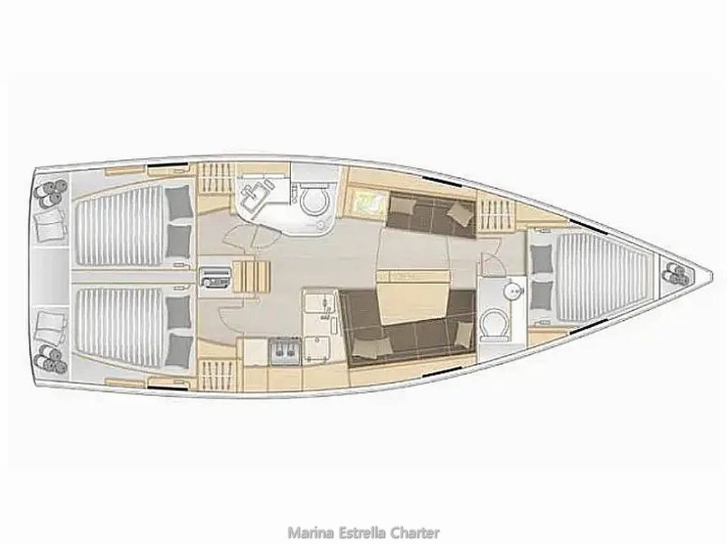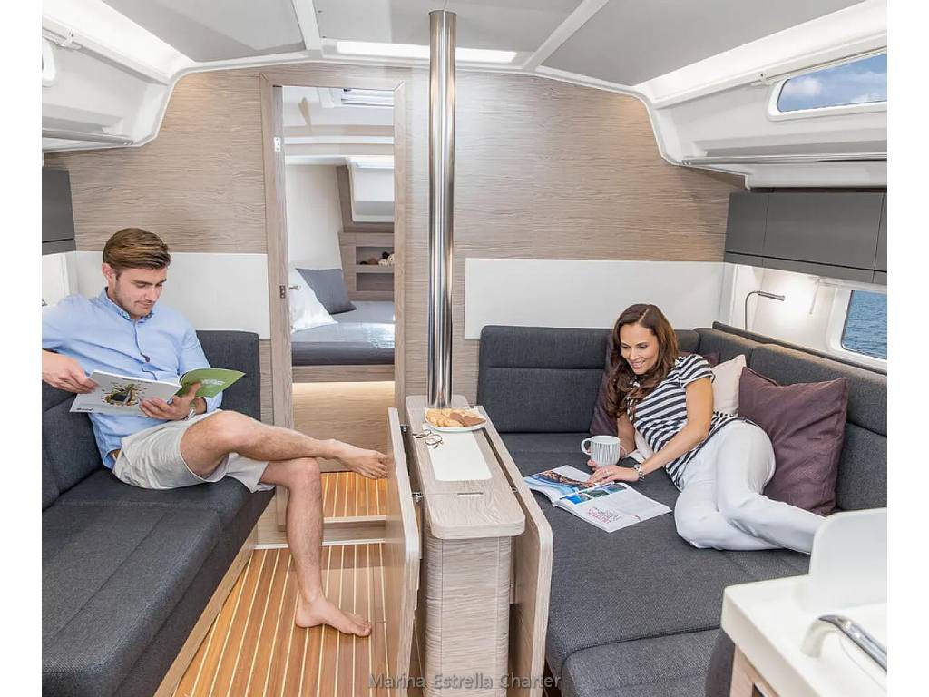 El Hanse 388 "FuFu" puede alojar hasta 8 personas, con 3 camarotes dobles y un salón convertible con 2 camas adicionales. Además, dispone de 2 baños completos con ducha, garantizando privacidad y comodidad en todo momento.