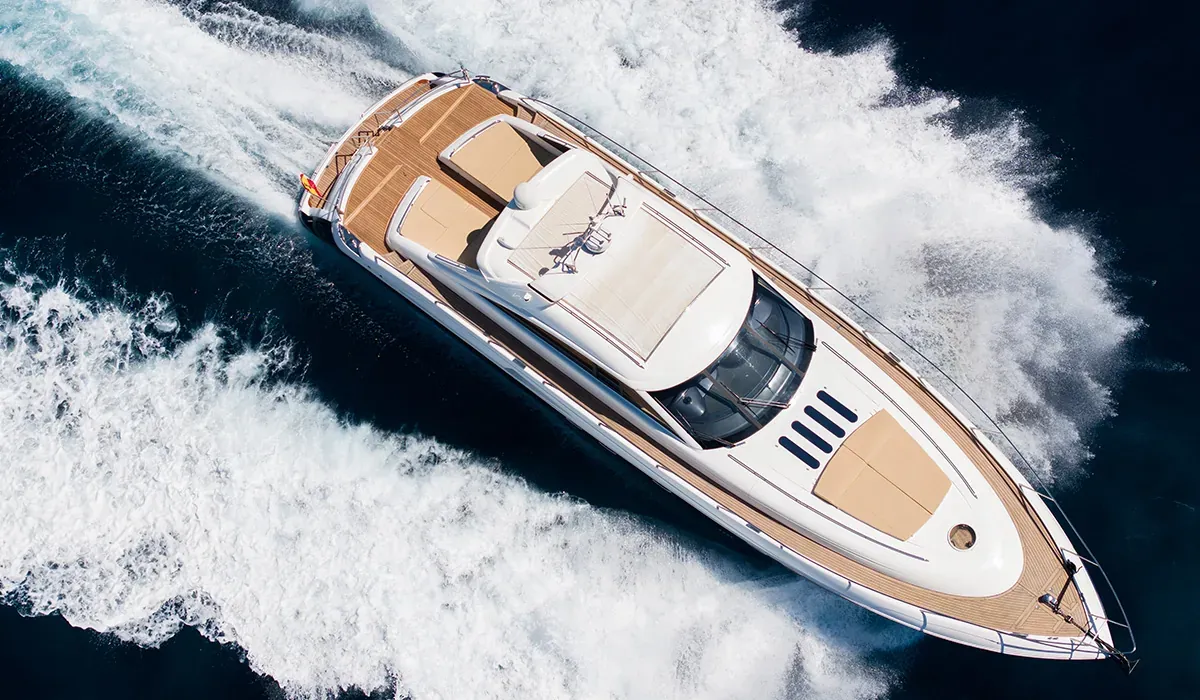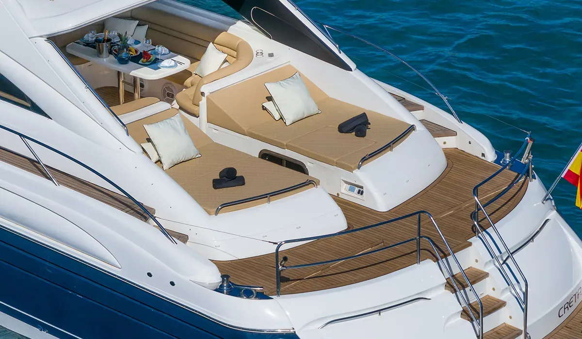Hay barcos pensados para navegar. Y hay barcos pensados para disfrutar. El Princess V65 "Creta" es de los segundos. Construido por el prestigioso astillero británico Princess Yachts, con sus 21 metros de eslora y sus inconfundibles líneas deportivas en azul marino y blanco, el "Creta" es uno de los yates de day charter más elegantes y solicitados de Ibiza. Con base en Marina Botafoch, en el corazón náutico de la isla, está disponible para excursiones de día con hasta 12 huéspedes y tripulación profesional a bordo. Una jornada en el "Creta" no es simplemente un día en barco. Es una experiencia que no olvidarás.