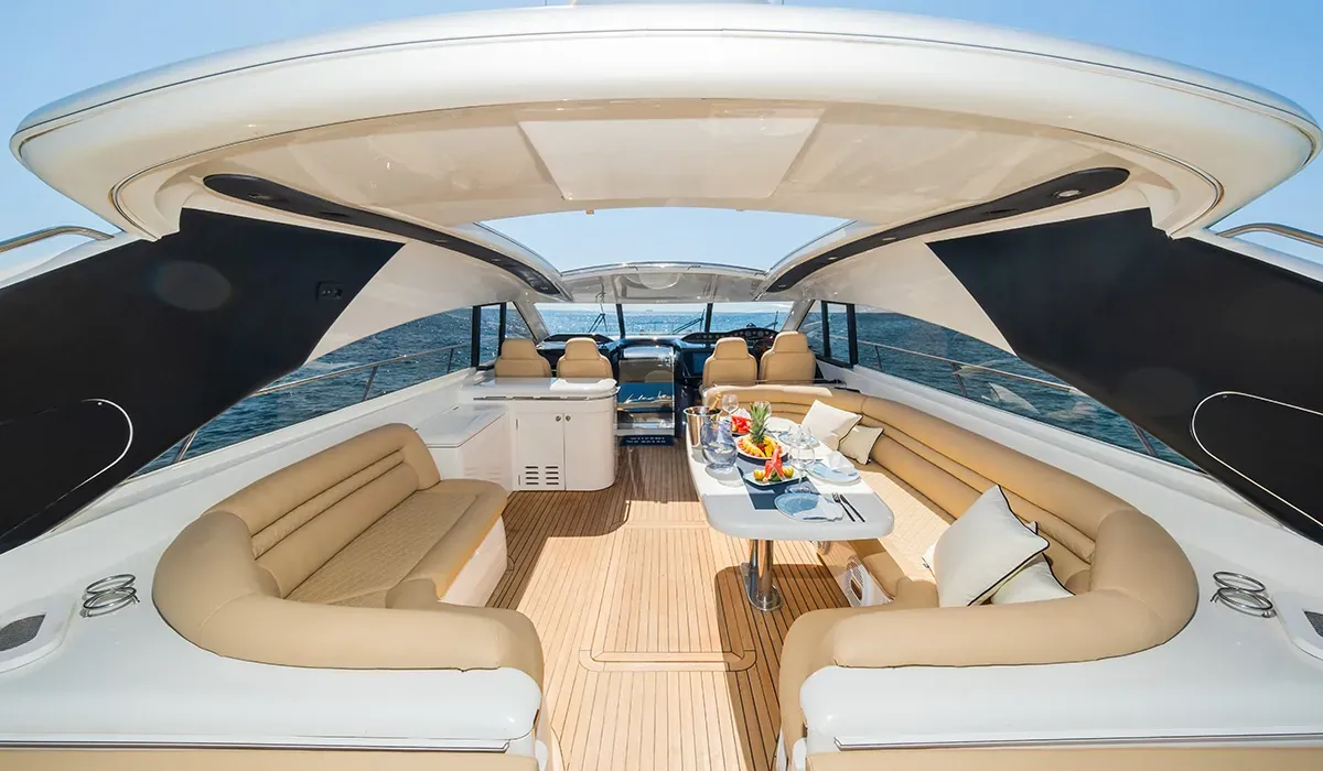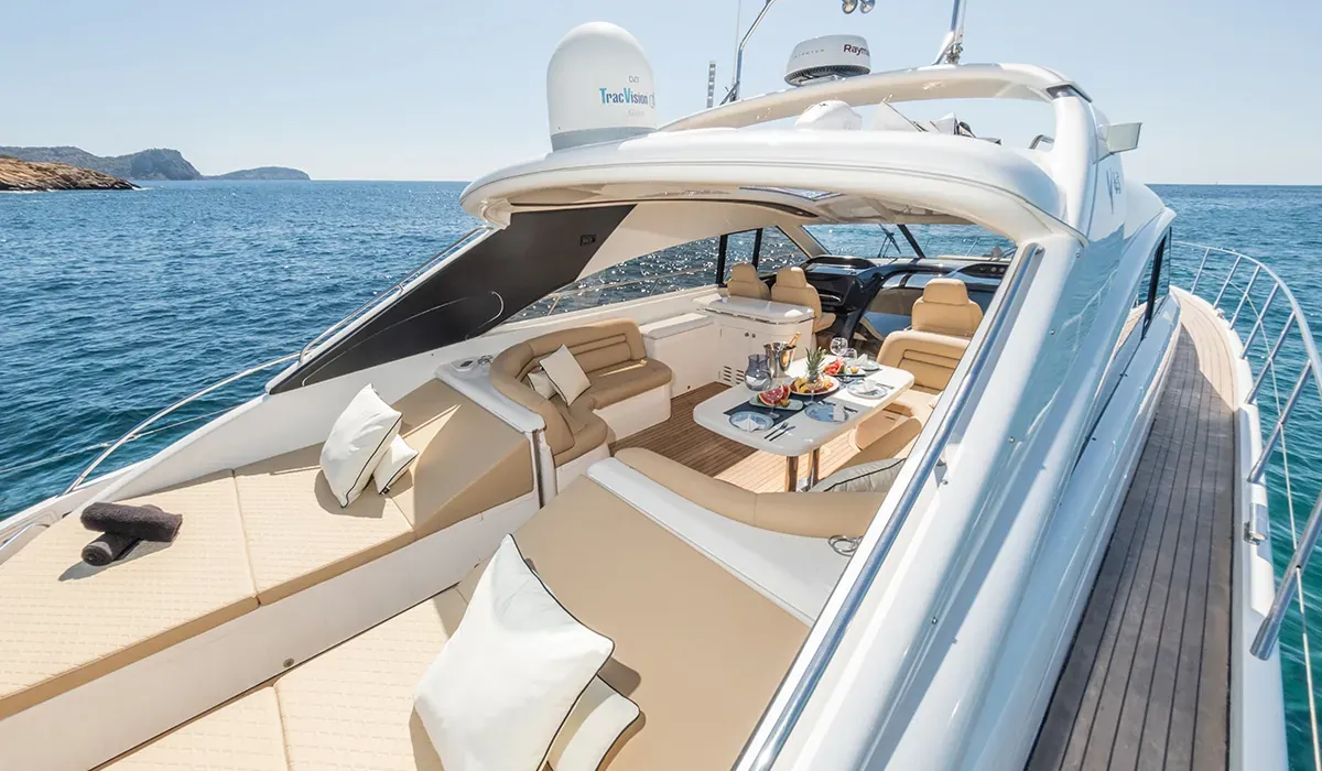 El Princess V65 "Creta" es el barco perfecto para un día de charter en Ibiza con familia, pareja o grupo de amigos. Elegante, veloz, confortable y con la tripulación perfecta. Solo falta reservar.