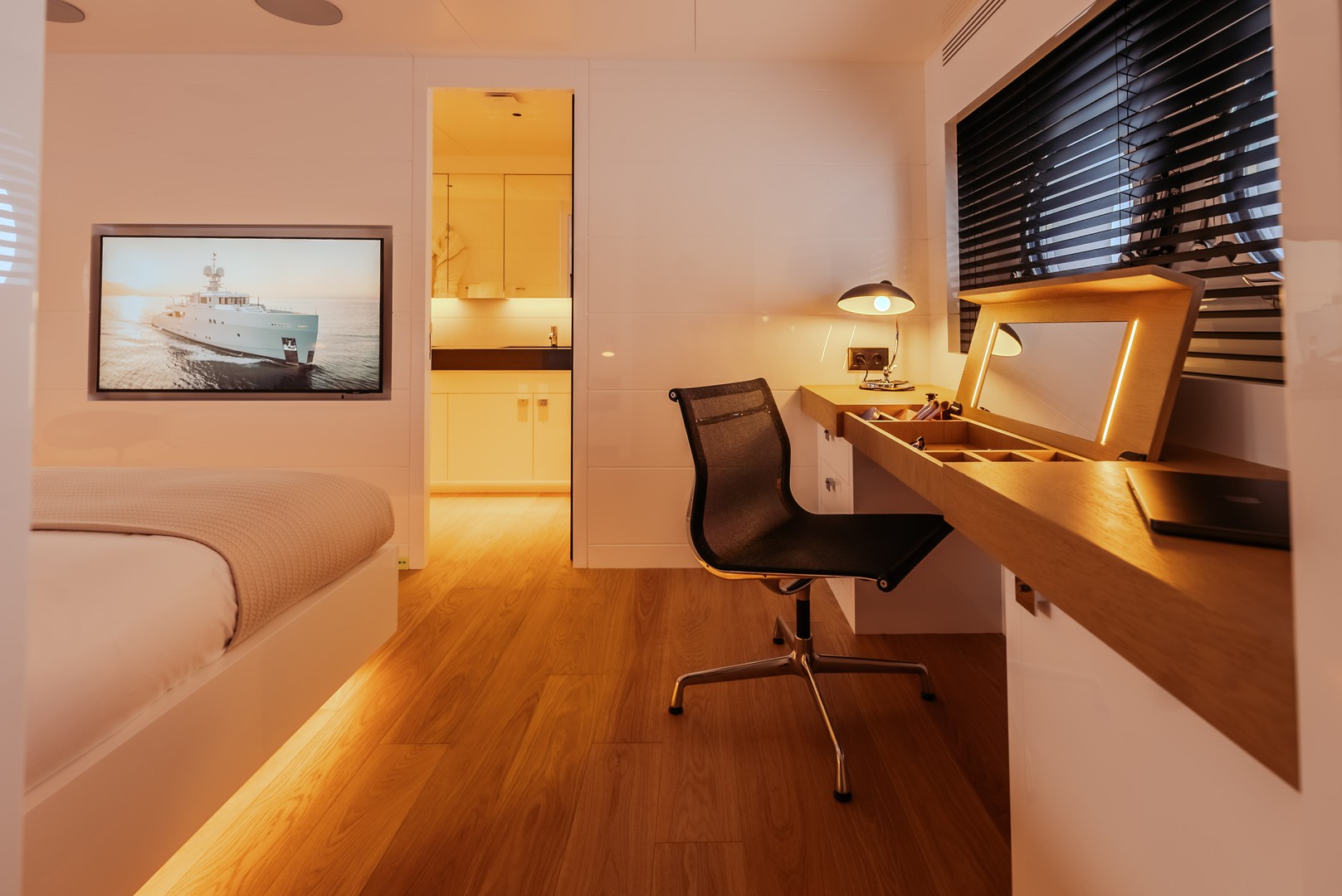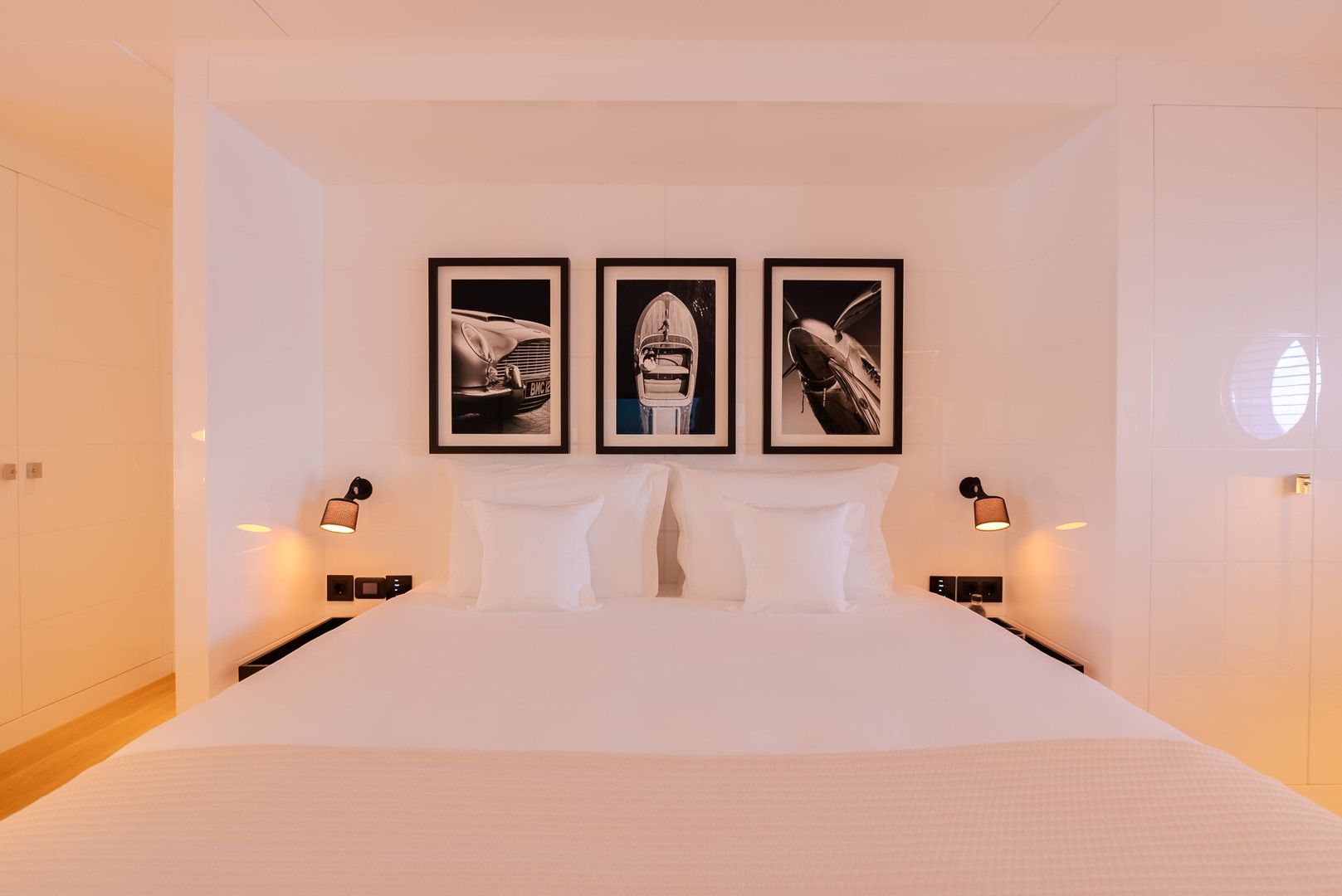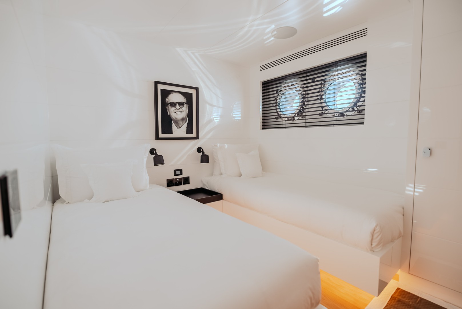 | 2 cabinas VIP, 1 cabina maestra, 2 cabinas gemelas, 1 cabina para la tripulación, | ||