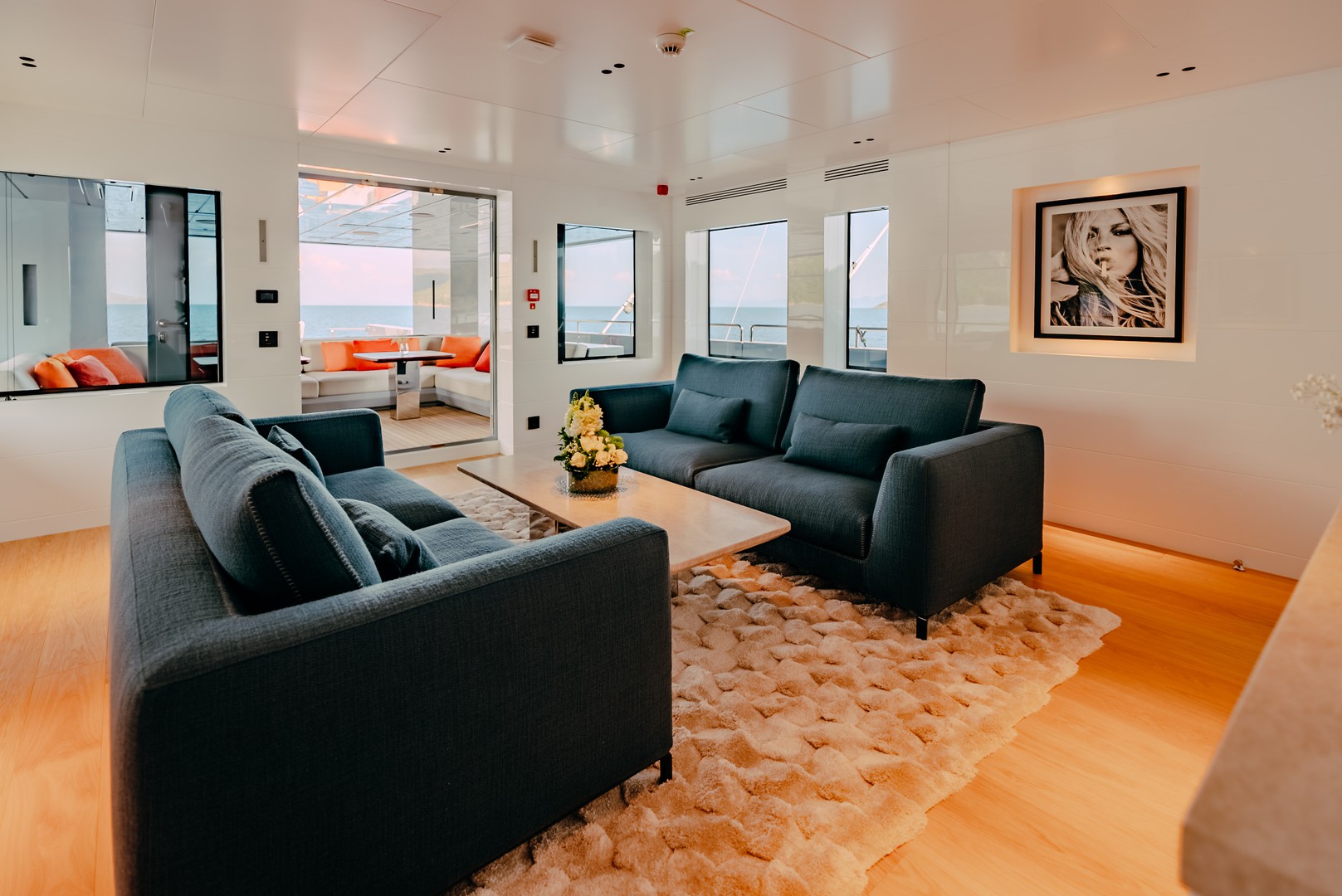 Zonas lounge de lujo para relajarte o socializar con vistas infinitas.
