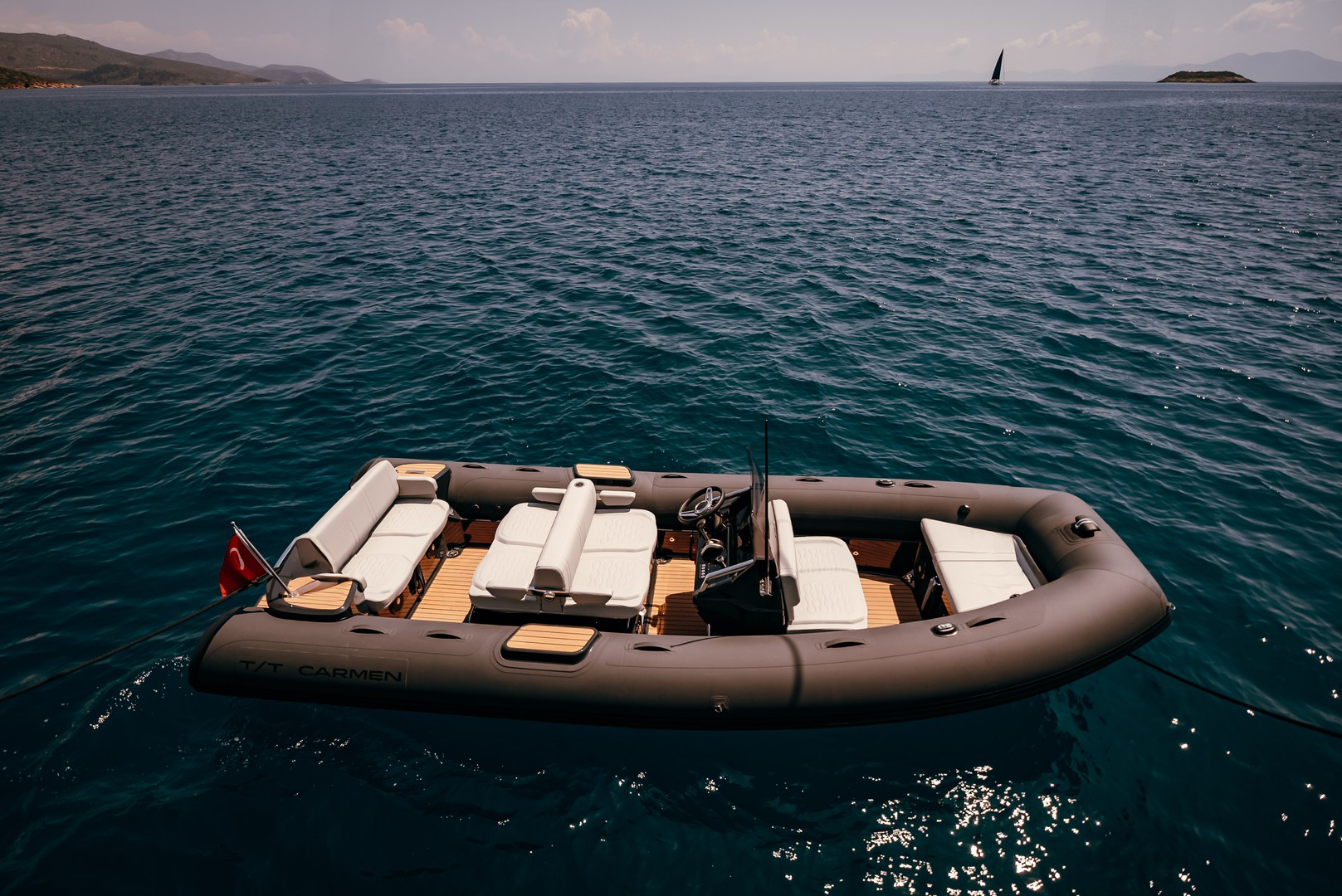 Con 5 camarotes de ensueño (incluyendo una suite principal con baño doble), Carmen acomoda cómodamente hasta 10 invitados. Y con una tripulación de 7 personas, solo tendrás que preocuparte por una cosa: disfrutar.