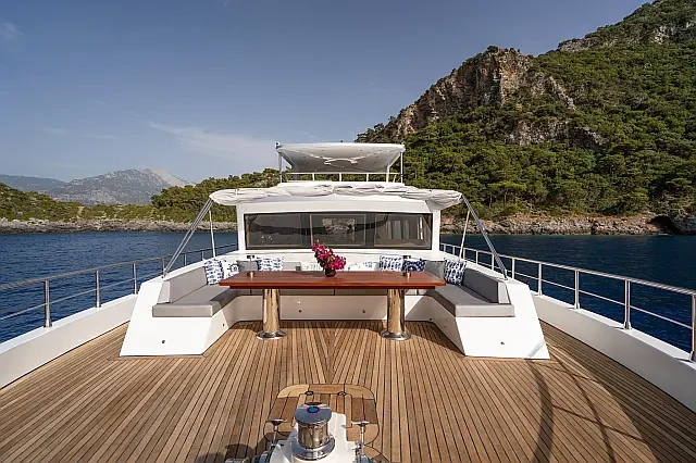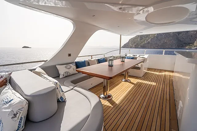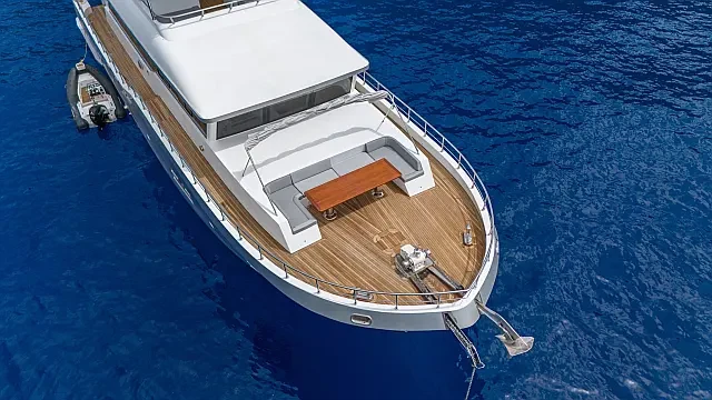 Detalles que marcan la diferencia: cubierta de teca, A/C, TV, generador de energía y mucho más.