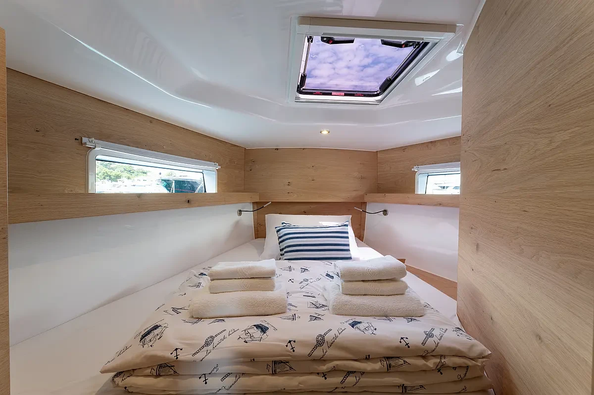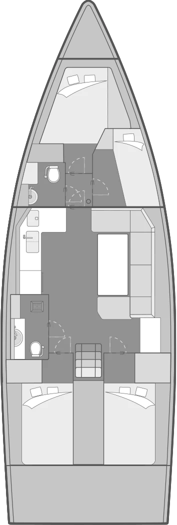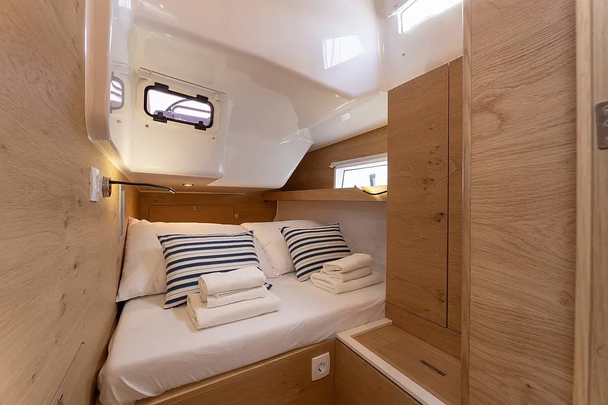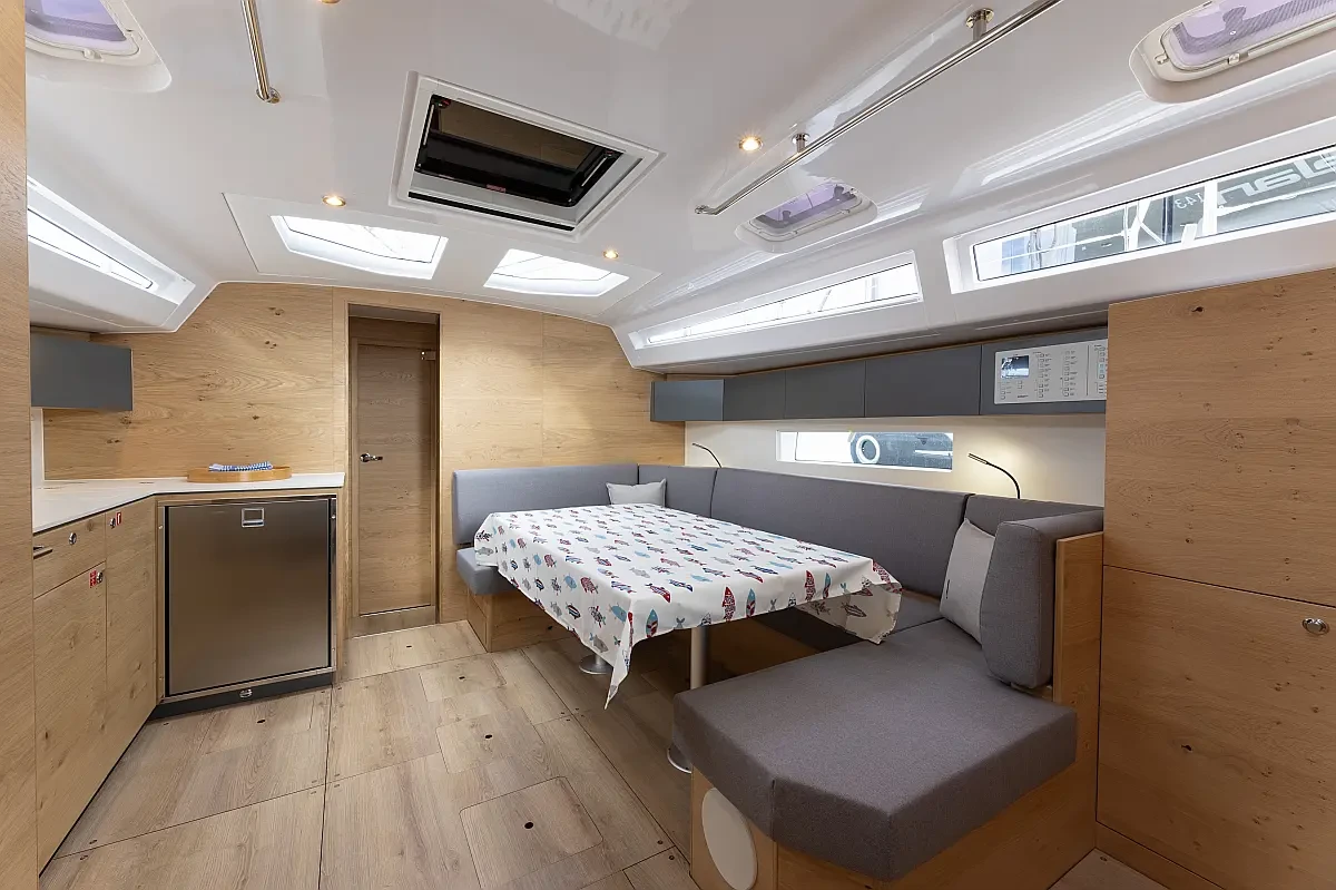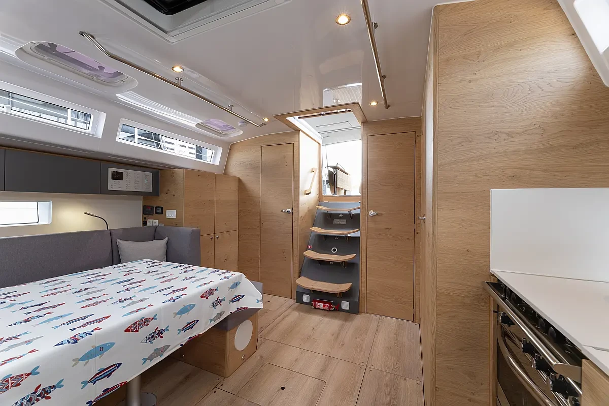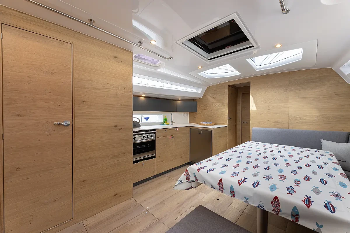 Suba a bordo del Elan Impression 45 ELANA y embárquese en una lujosa aventura llena de confort y estilo. Con 4 cabinas dobles, una con literas y con 2 baños, este velero ofrece un amplio espacio para hasta 8 personas para disfrutar de sus vacaciones de vela en Croacia. Dispone de una cocina totalmente equipada, con fogones, horno, nevera y una nevera adicional en el salón. Refrésquese y manténgase fresco, lejos del sol, en el salón con aire acondicionado.