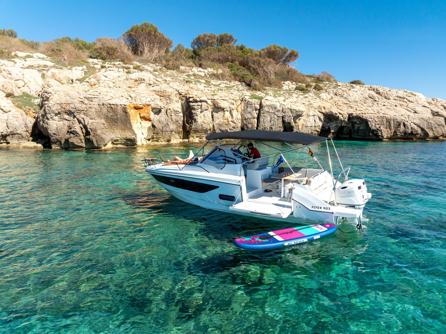 ¡Vive Menorca desde el mar! Descubre el barco ideal para pasar un día inolvidable navegando por las aguas cristalinas de la isla con la Flyer 9. Dispones de solárium en proa y popa para tomar el sol y relajarte en las calas más espectaculares. Capacidad hasta 10 personas . ¡Tu aventura náutica te espera en Menorca!