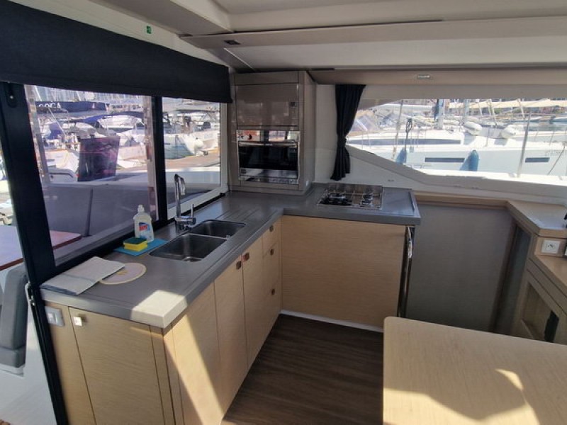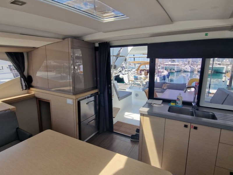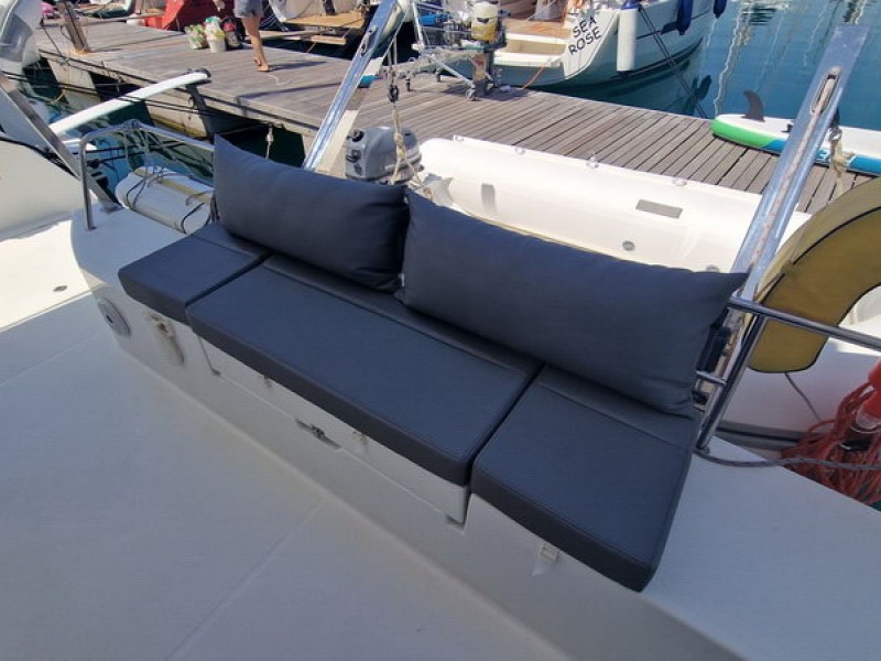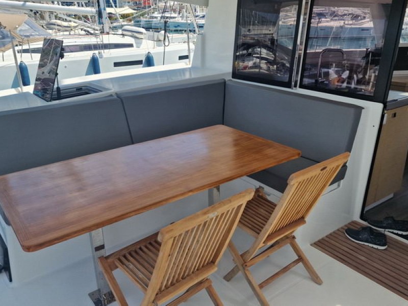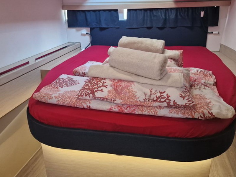 Bienvenido a bordo del catamarán Fountaine Pajot Lucia 40 que impresiona por su lujoso equipamiento y confort. Este yate puede alojar hasta 8 personas en 4 espaciosas cabinas dobles, cada una con su propio cuarto de baño - una característica poco común que hace que la estancia sea particularmente agradable. Equipado con paneles solares para un suministro de energía sostenible una segunda nevera y calefacción.En 2024, se pusieron dos motores nuevos, que garantizan un viaje fiable y seguro.