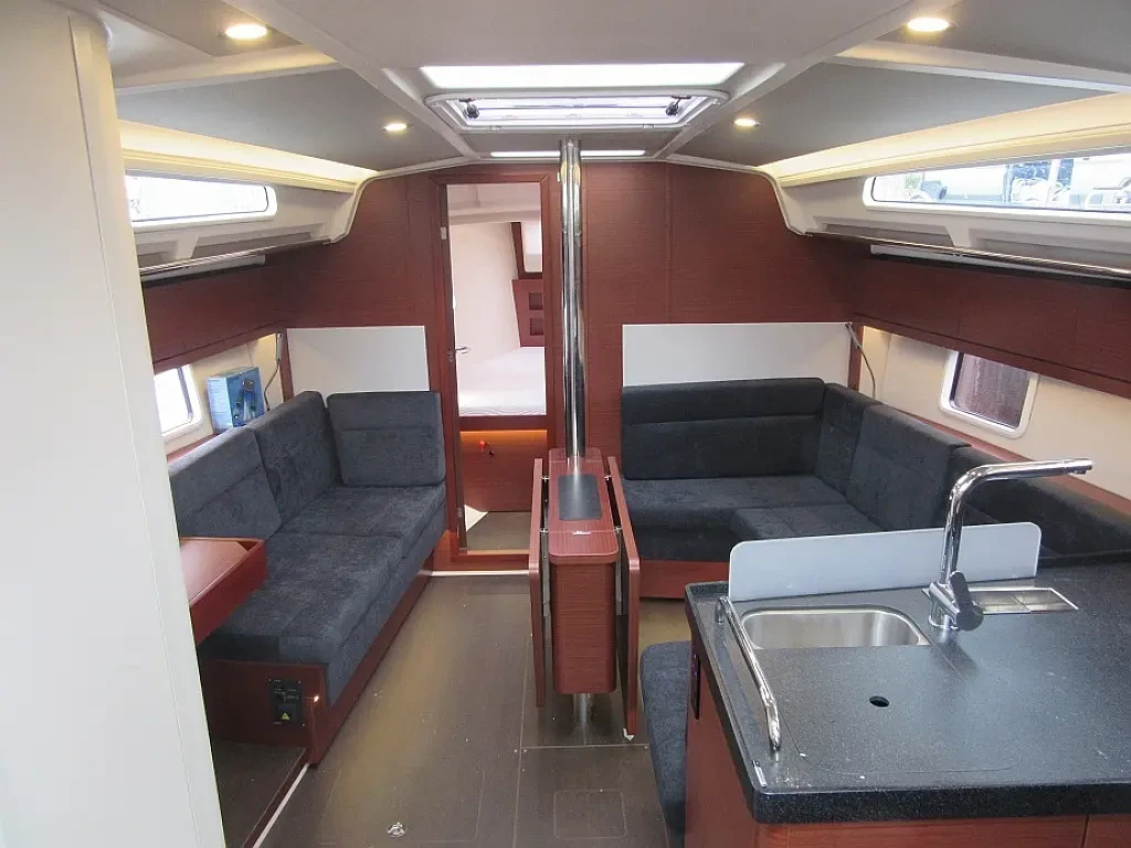 Con capacidad para hasta 7 personas, el barco cuenta con tres cabinas dobles y un salón convertible con cama adicional, ofreciendo comodidad y flexibilidad. Sábanas y almohadas están incluidas para tu confort.