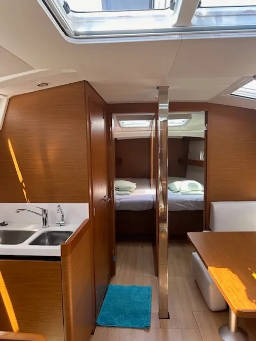 Bimini, Hélice de proa, Altavoces de bañera, Mesa de cabina, Embarcación auxiliar, Winches eléctricos, Molinete eléctrico de ancla, Capota antirociones, Cojines de bañera, Bomba de achique, Escalera de baño, Plataforma de baño, Pasarela, Altavoces exteriores.