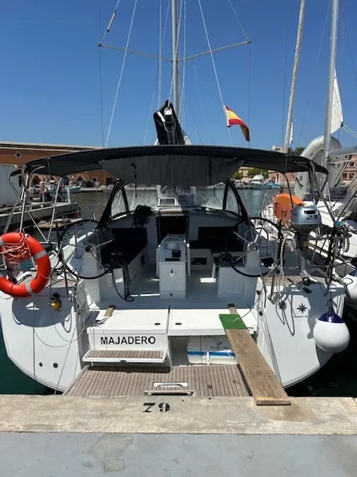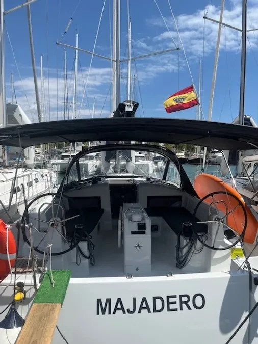 Mayor con sables. Genova enrollable. Helice de proa.Paneles solares. Bimini. Capota antirociones. Plotter en bañera. Plataforma de baño,