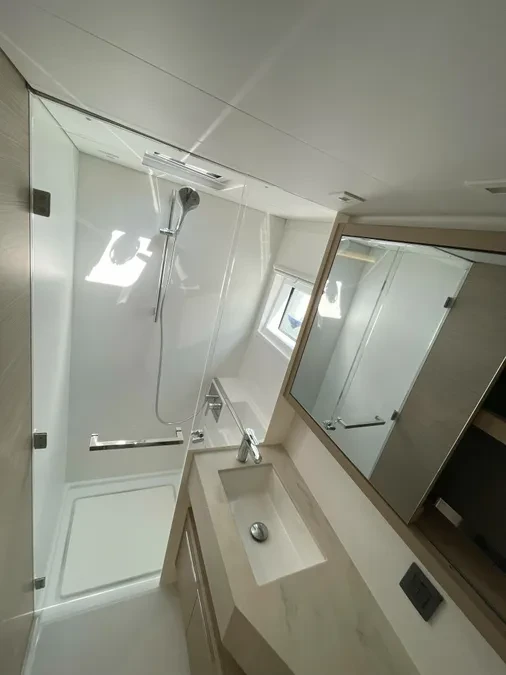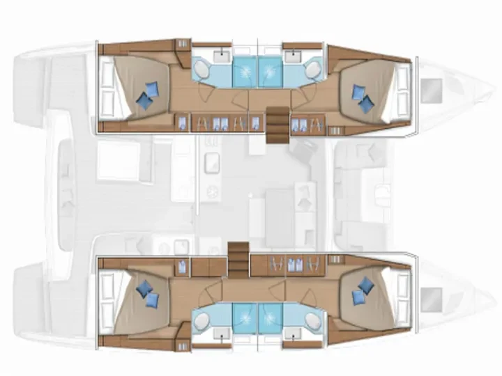 Astreus ,ofrece una distribución interior muy confortable, con 4 cabinas dobles con baño privado, todas ellas con WC eléctricos, además de 2 cabinas adicionales para tripulación permitiendo acoger hasta 10 personas a bordo.
