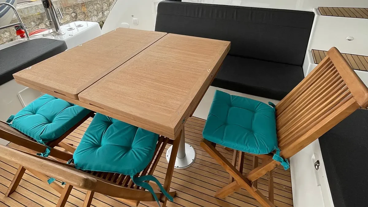 Dispone de todos los extras de confort más demandados: aire acondicionado, generador, potabilizadora, neveras, congelador, horno, cafetera , sistema de sonido… y una plataforma de popa amplia para disfrutar del mar.