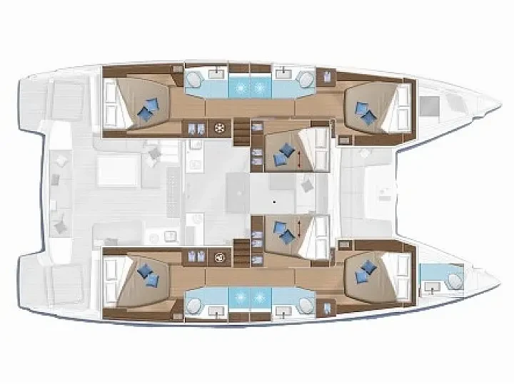 Con 6 cabinas amplias y bien distribuidas, este catamarán ofrece un ambiente perfecto para el descanso y la relajación. Sus generosos espacios interiores y exteriores crean una sensación de libertad y lujo a bordo.