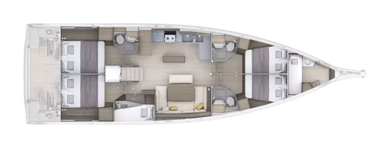 Por dentro y por fuera, cada detalle, cada material y cada innovación han sido cuidadosamente pensados para sublimar la experiencia del navegante, ya sea en solitario o en familia. Además, el camarote de proa ofrece espacio adicional, ideal para alojar a un miembro de la tripulación o proporcionar un lugar especial para los invitados.