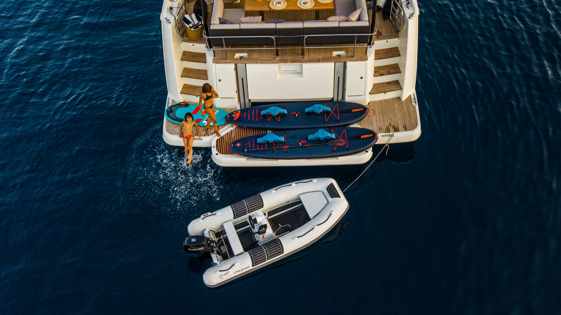 Prestige M48 es un exclusivo catamarán a motor disponible con patrón