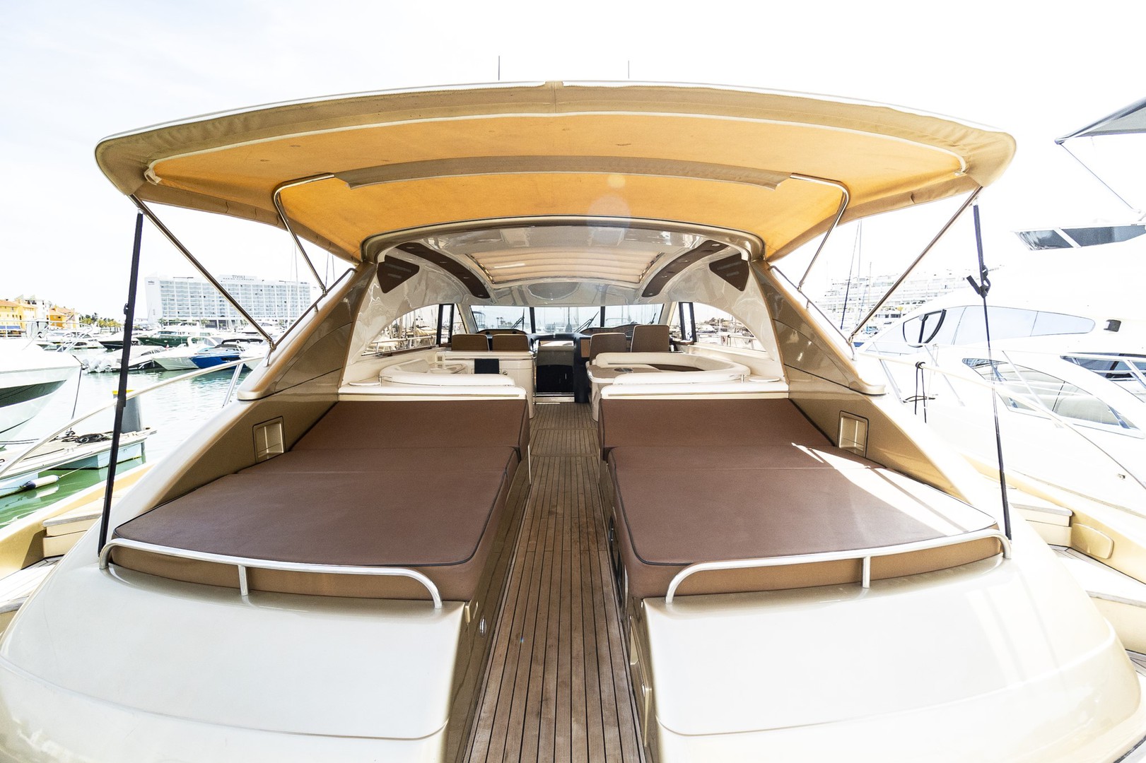 Vive una experiencia de lujo princes Embárcate en una aventura inolvidable a bordo de un exclusivo yate, Princess V65,Crystal, con tripulación.Sube a bordo y disfruta de un welcome drink y una exquisita selección de aperitivos.