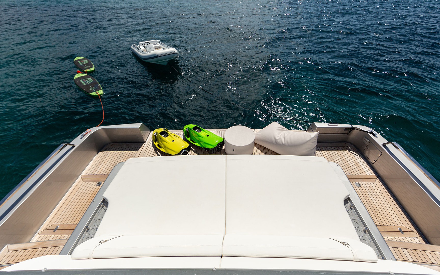 Para los amantes de la aventura, ‘Lemon Not Lime’ cuenta con una cuidada selección de juguetes acuáticos. Entre ellos se incluyen esquís acuáticos, aptos tanto para principiantes como para experto, dos potentes F5S SEABOB que ofrecen la posibilidad de deslizarse sobre la superficie o sumergirse en las aguas cristalinas, y tablas de wakeboard para disfrutar de momentos llenos de adrenalina.