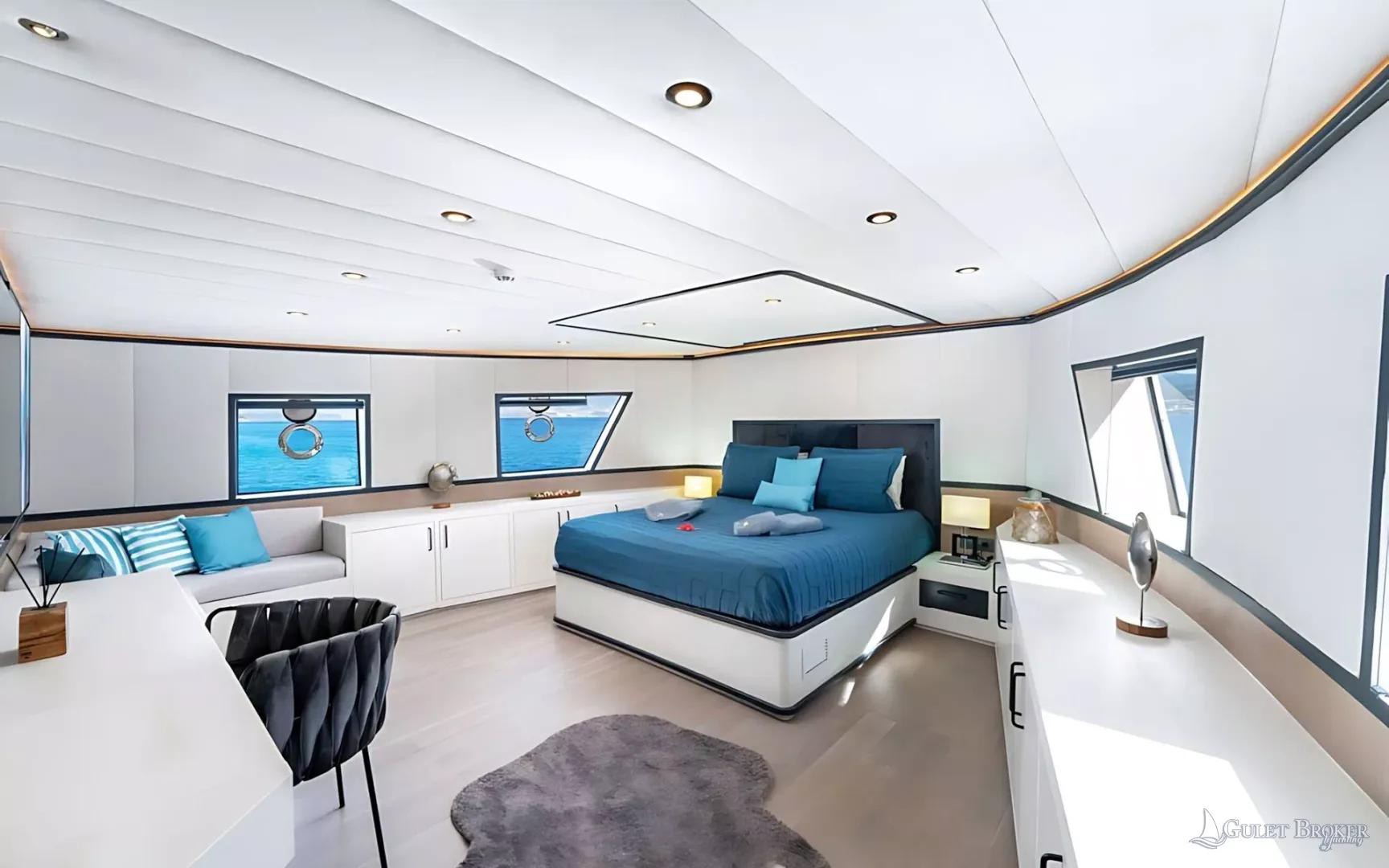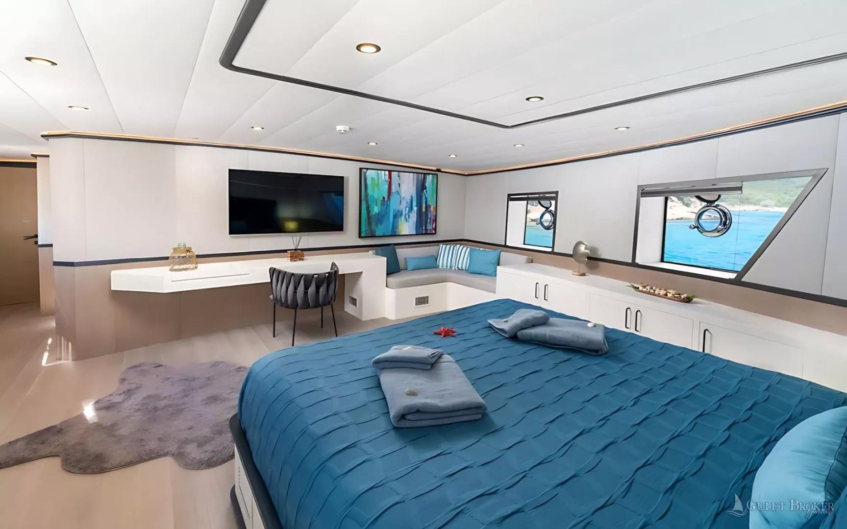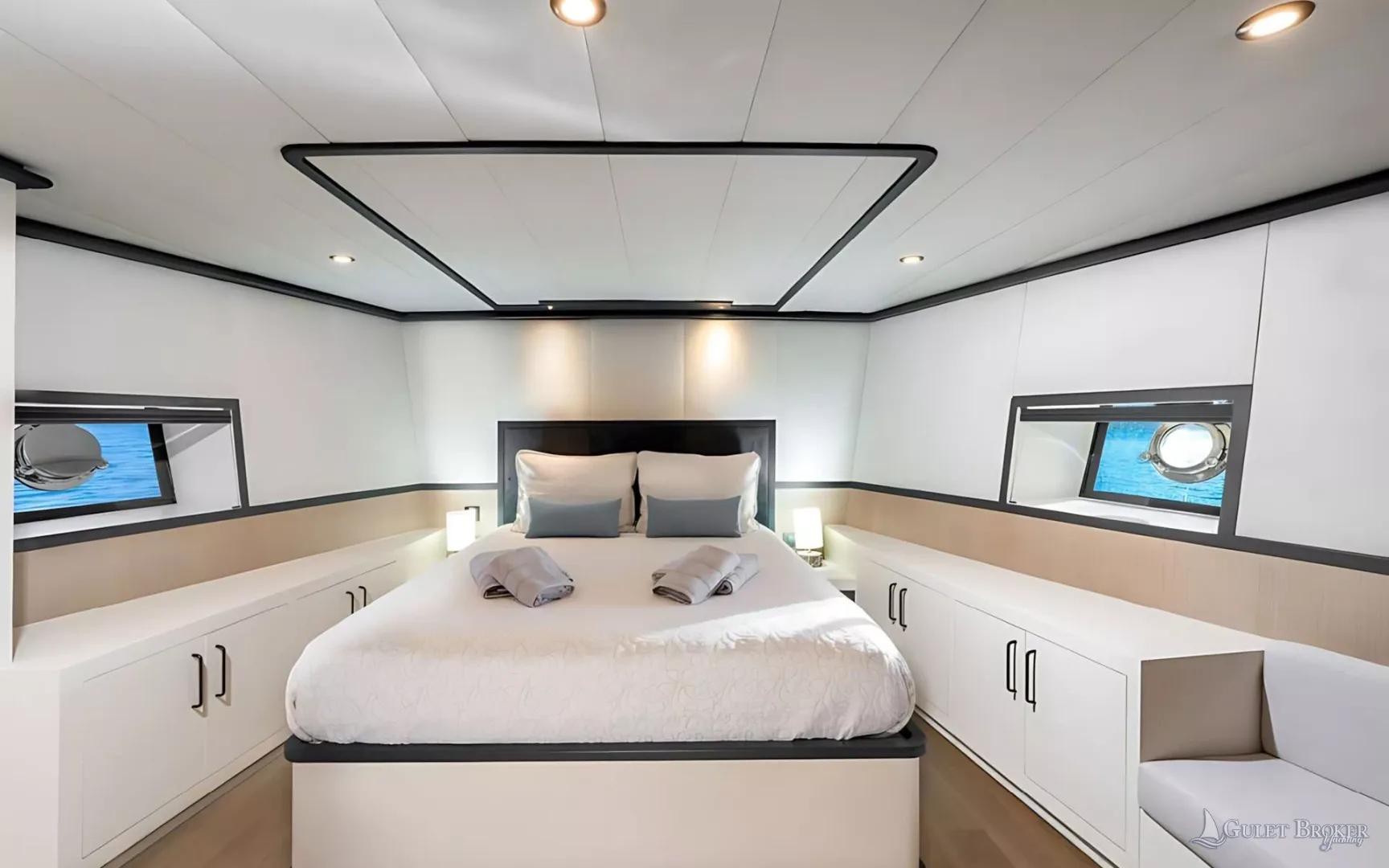 Relájate en el salón principal, con cómodos asientos y grandes ventanales que inundan de luz el espacio. El comedor elegante es perfecto para disfrutar de comidas memorables. Mantente conectado con Wi-Fi y disfruta de entretenimiento de última generación mientras navegas por aguas cristalinas.