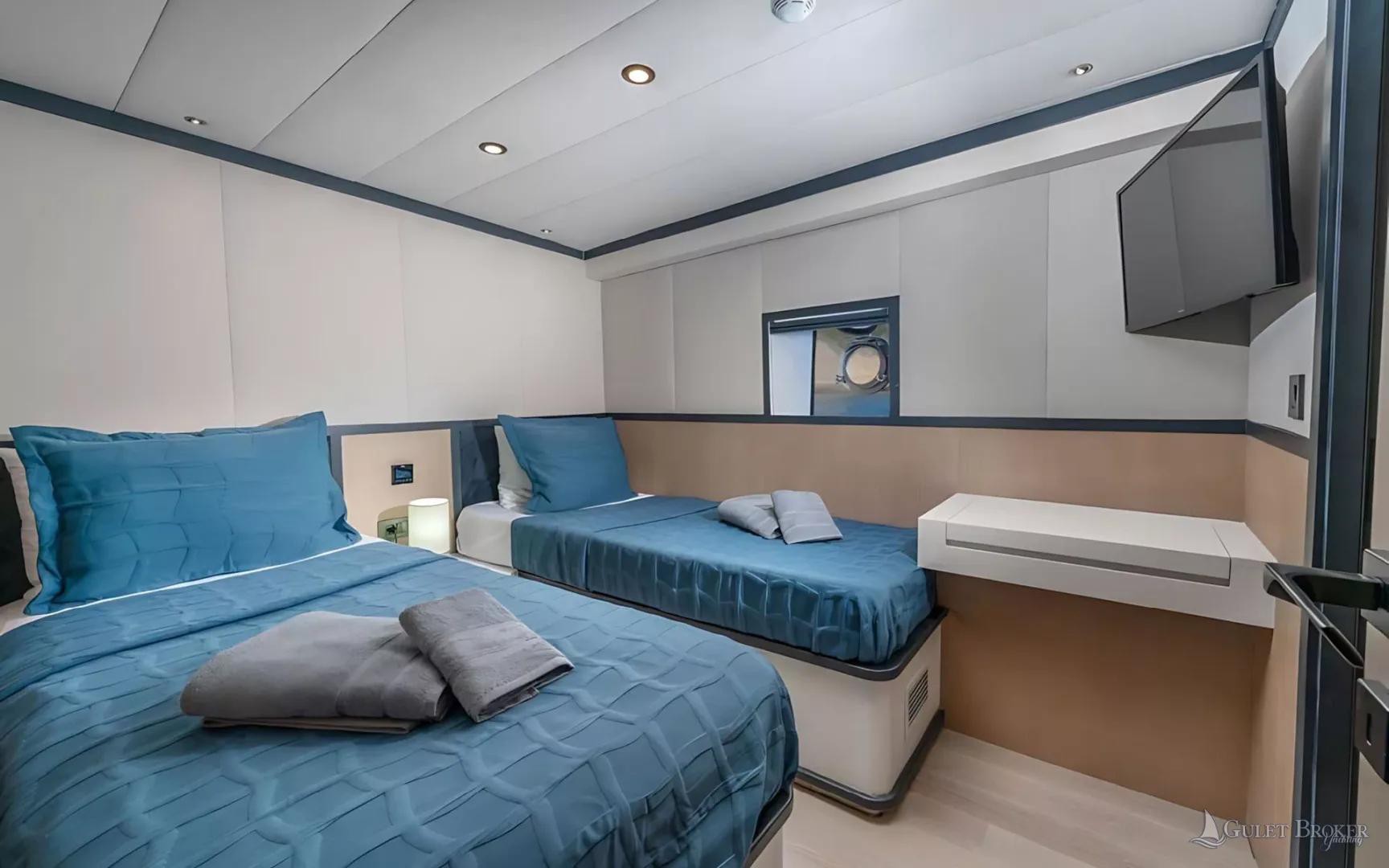 | 3 cabinas dobles, 2 cabinas triples, 1 cabina maestra, 1 cabina para la tripulación, | ||